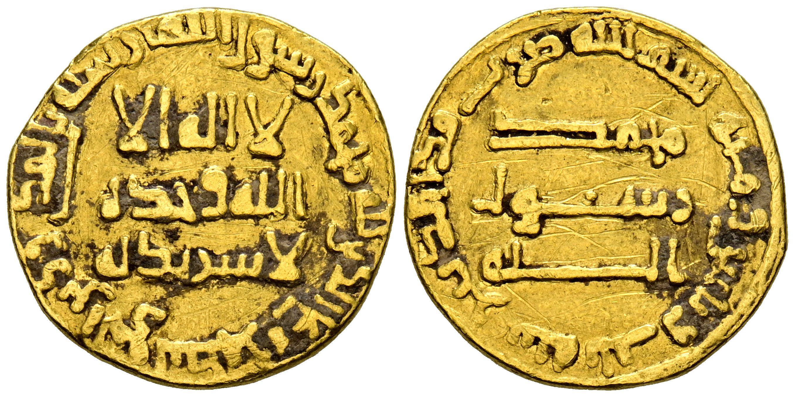 ABBASI, Abd Aallah al-Saffah (132-136H/749-754). Dinar. (Au. 4,13g/19mm). 133H. Sin ceca (Irak). (Album-210; Bernardi-51). MBC-/MBC. Rayitas.