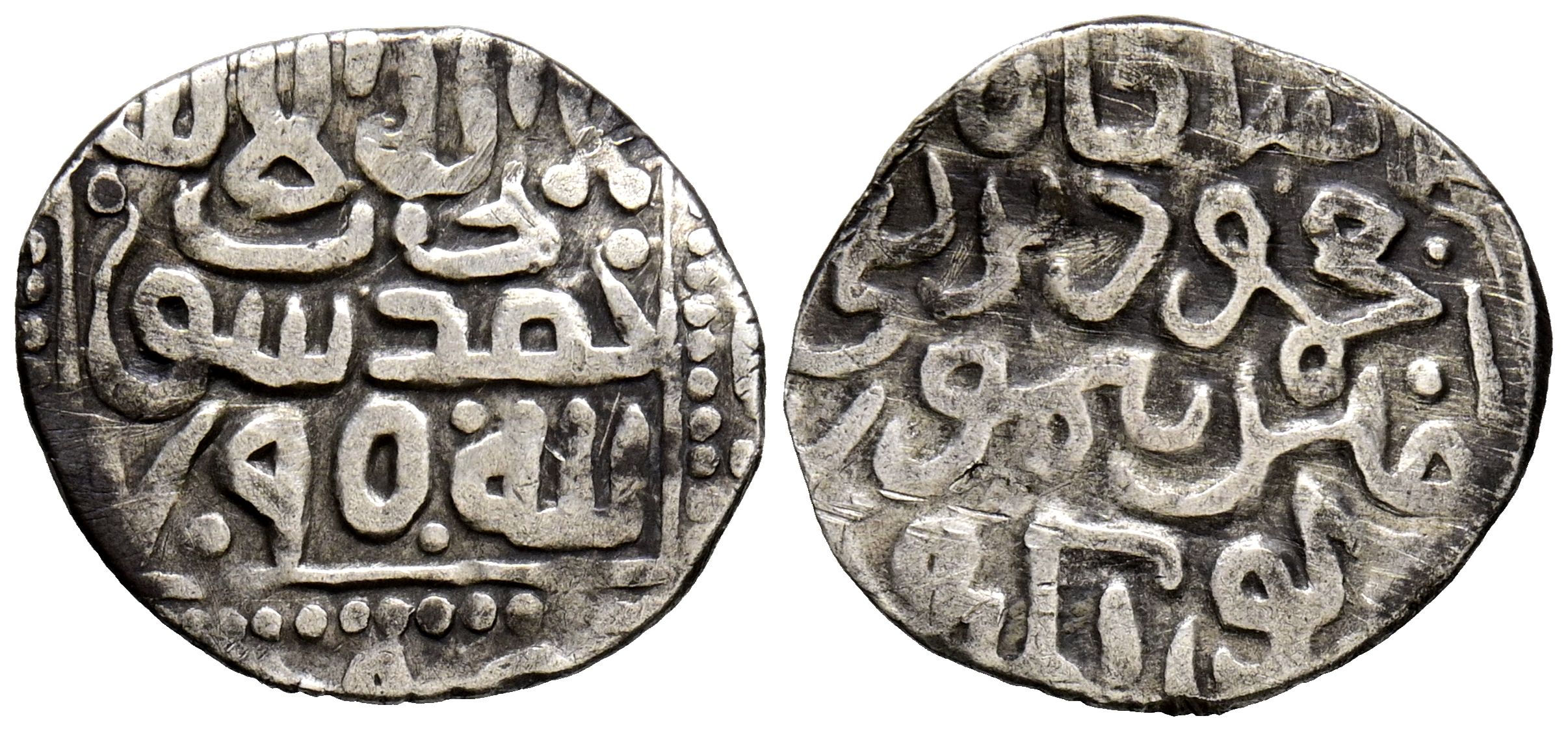 TIMURÍES. TIMUR CON MAHMUD ENE. 1/4 de Tanka. (Ar. 1,10g/15mm). 795 H. Samarcanda. (Mitchiner 1977-1892 var. año). MBC. Alabeada.