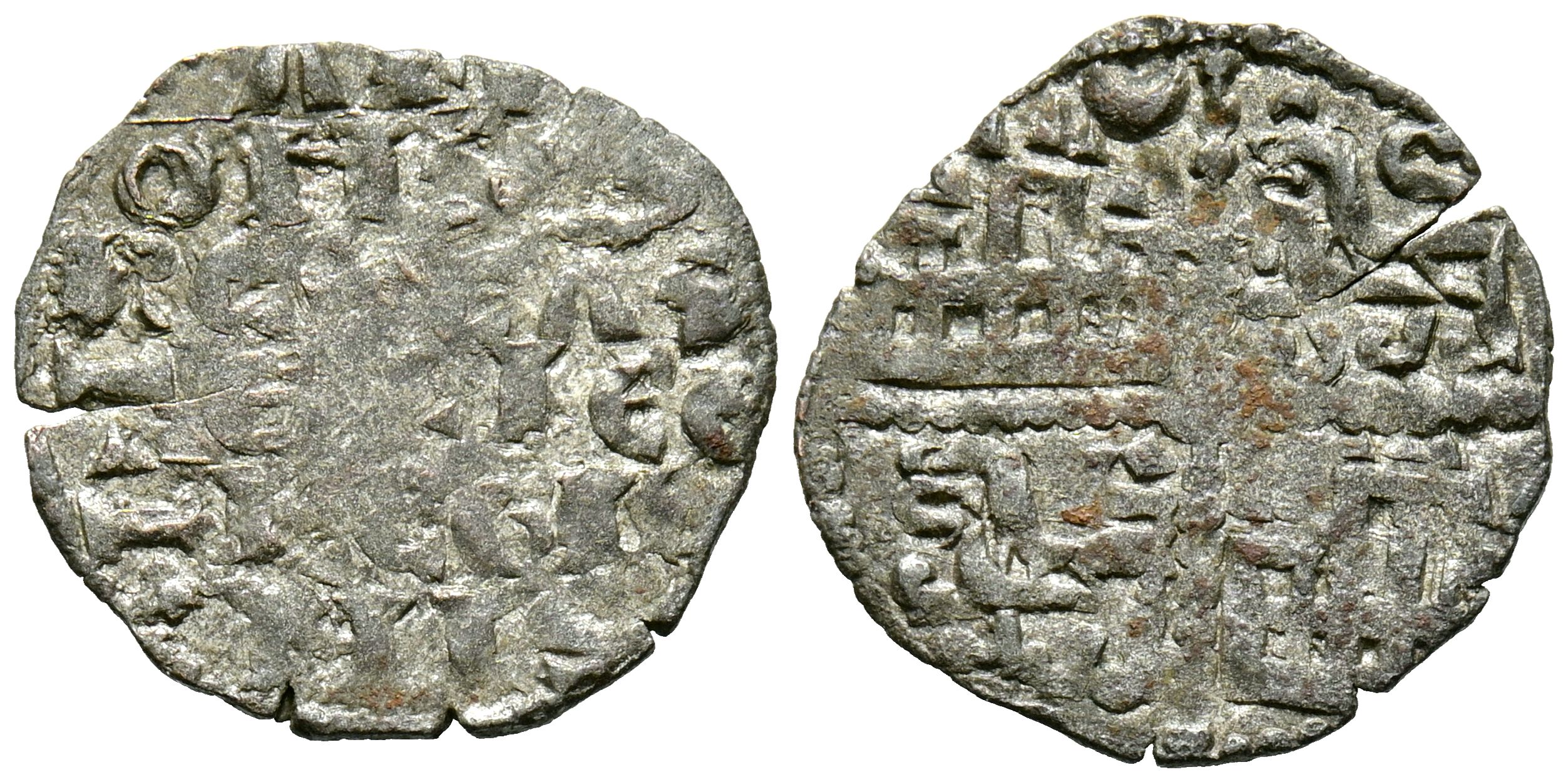 ALFONSO X (1252-1284). Dinero. (Ve. 0,76g/17mm). Marca de ceca: Creciente. (FAB-238). Anv: Leyenda en seis líneas: ALFONSVS REX CASTELLE ET LEGIONIS. Rev: Castillos y leones con creciente en 1º cuadrante. BC+.