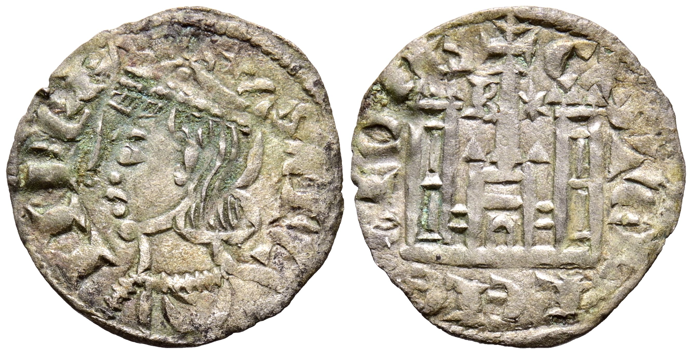 SANCHO IV (1284-1295). Cornado. (Ve. 0,79g/18mm). Burgos. (FAB-296). Anv: Busto coronado a izquierda, alrededor leyenda: SANCII REX. Rev: Castillo con cruz sobre vástago central y marca de ceca B y estrella, alrededor leyenda: CASTELLE E LEGIONIS. MBC.