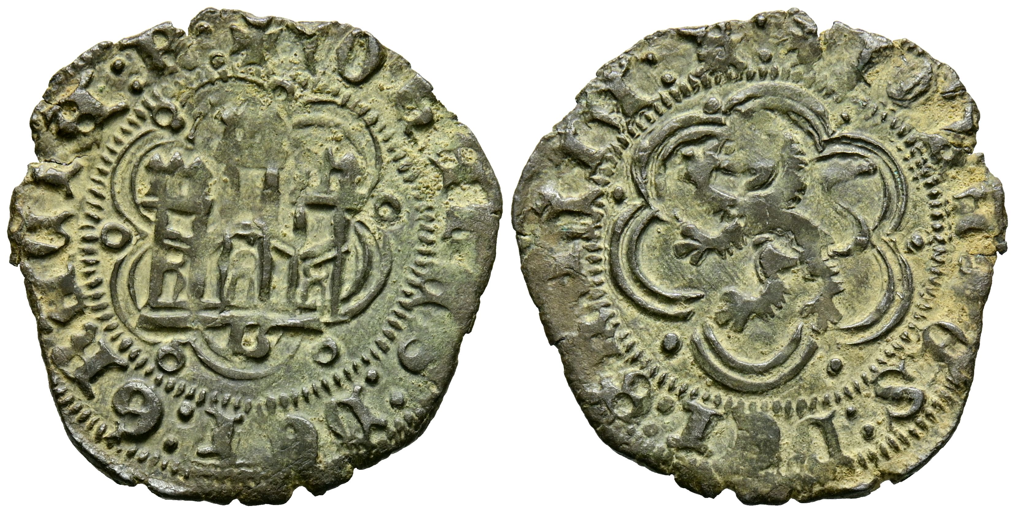 JUAN II (1406-1454). Blanca. (Ae. 1,89g/24mm). Burgos. (FAB-624). Anv: Castillo, debajo S, dentro de gráfila lobular, alrededor leyenda: IOHANES DEI GRACIA REX. Rev: León rampante a izquierda dentro de gráfila lobular, alrededor leyenda: IOHANES DEI GRACIA REX. MBC+.