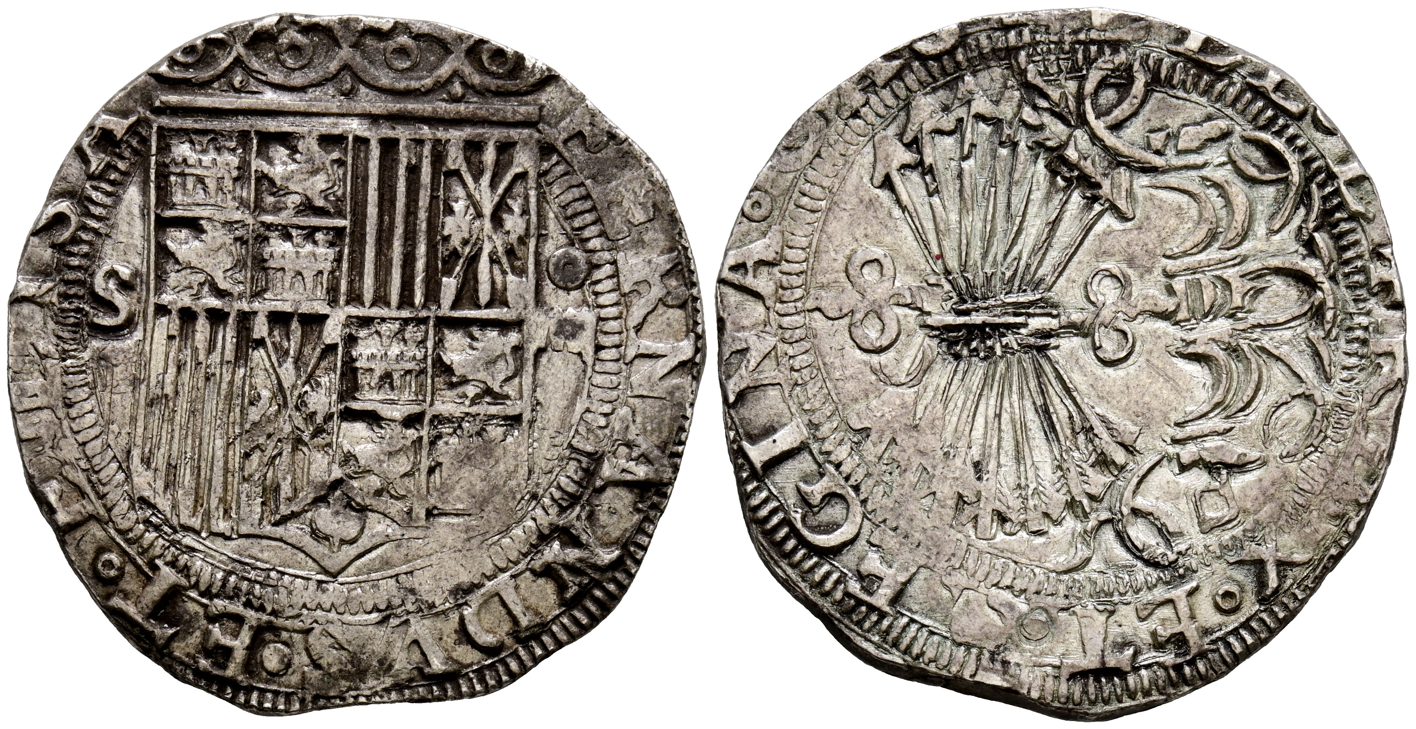 REYES CATOLICOS (1474-1504). 4 Reales. (Ar. 13,66g/33mm). Sevilla. (Cal-2019-564). Ensayador en reverso. MBC+.