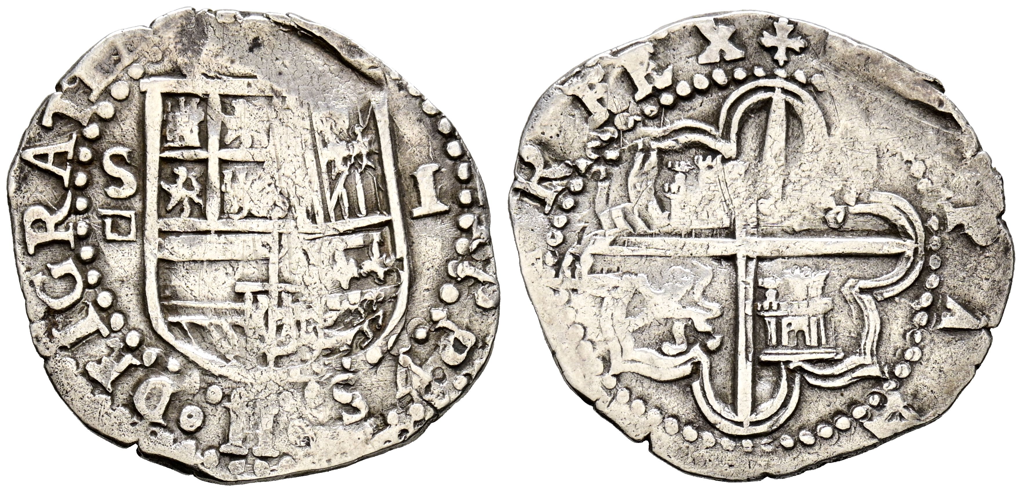 FELIPE II (1556-1598). 1 Real. (Ar. 3,09g/23mm). S/D (antes de 1588). Sevilla D. (Cal-2019-258). MBC. Interesante pieza.