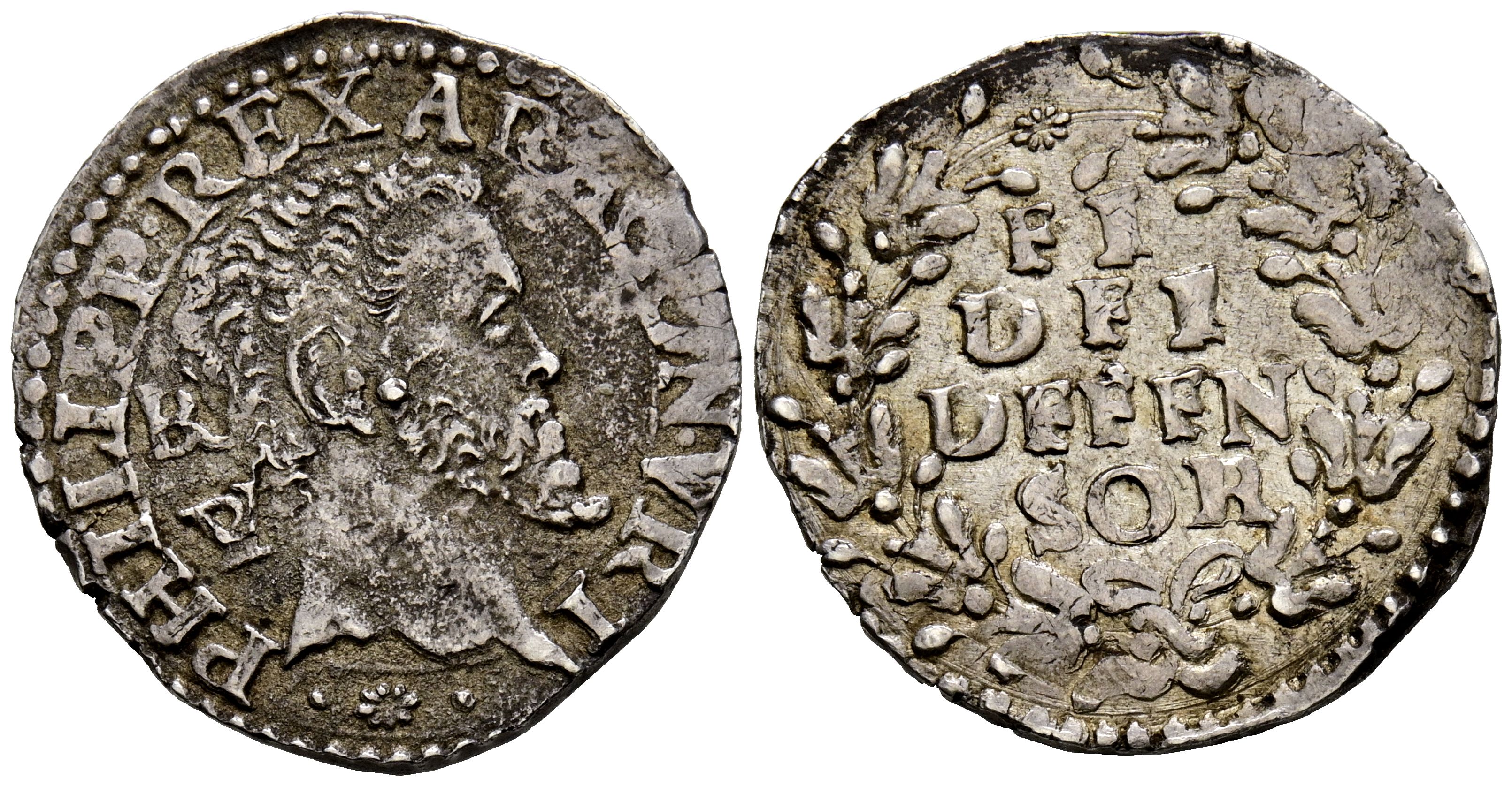 FELIPE II (1556-1598). Carlino (Ar. 3,00g/22mm). S/D. Nápoles IBR/VP. (Vicenti-315). MBC+.