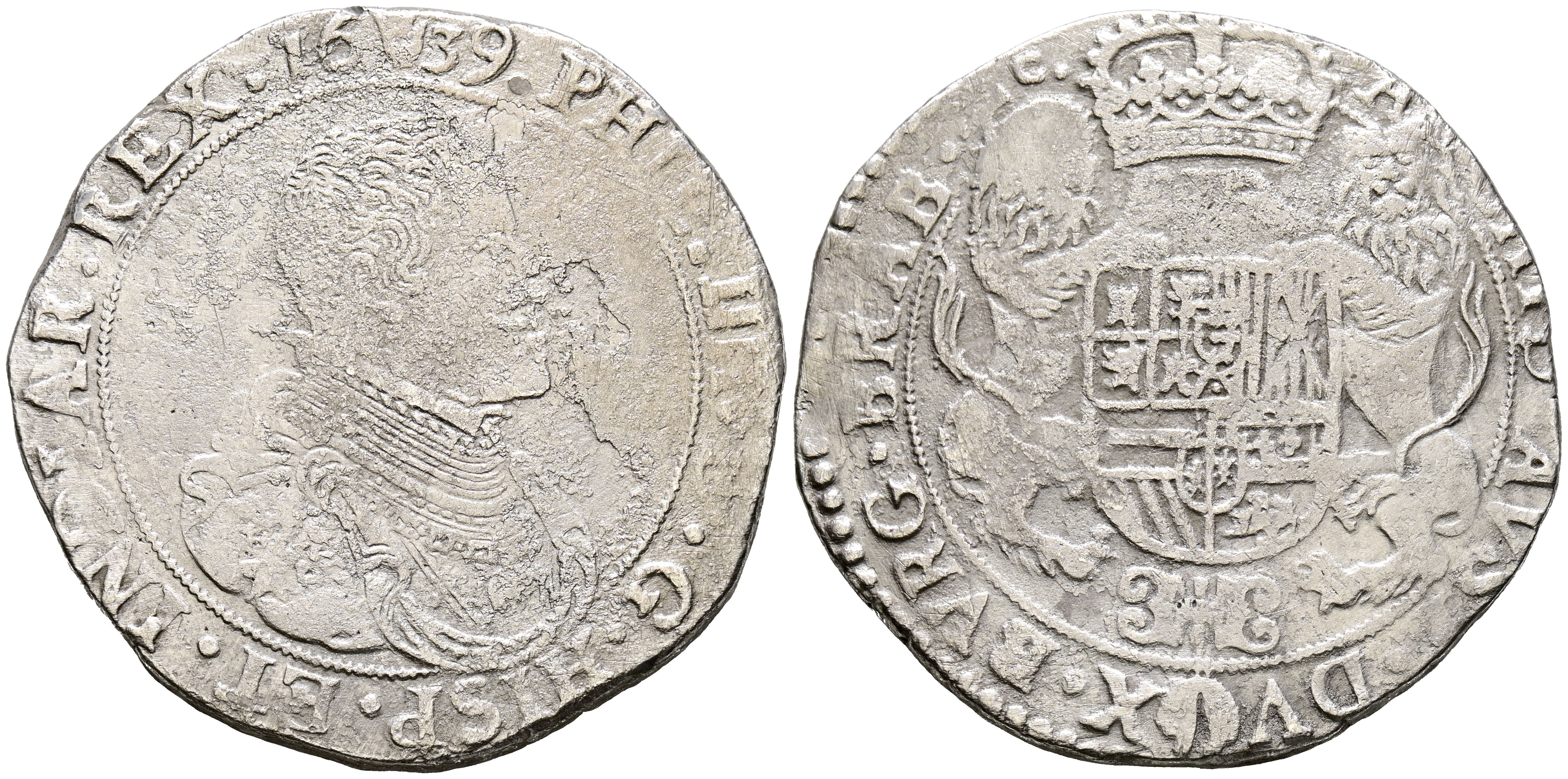 FELIPE IV (1621-1655). Ducatón (Ar. 31,92/42mm). 1639. Amberes. (Vicenti 1229). MBC. Oxidaciones limpiadas.