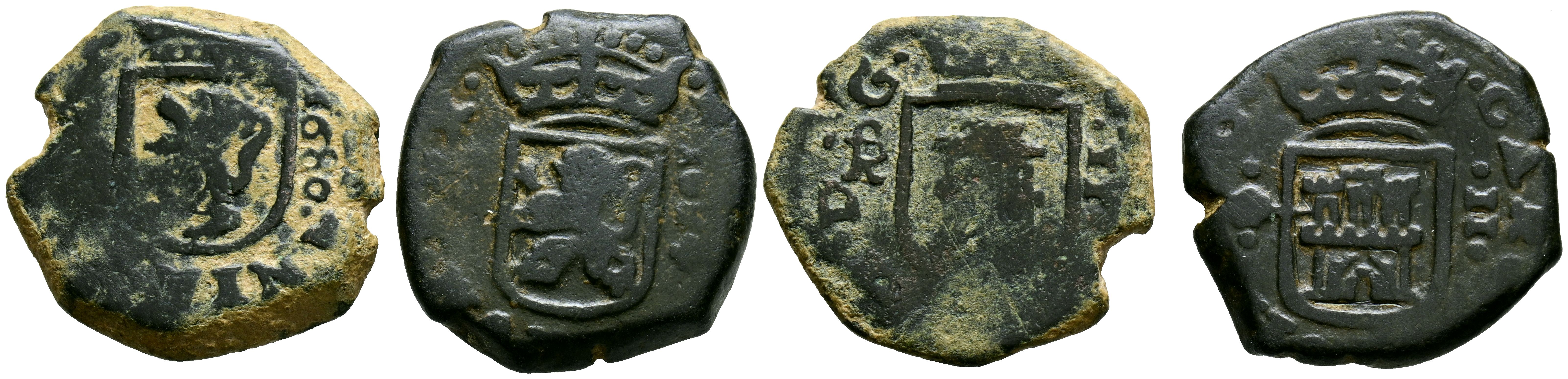 CARLOS II (1665-1700). Conjunto de 2 Maravedís de las cecas de Coruña y Trujillo. A EXAMINAR.