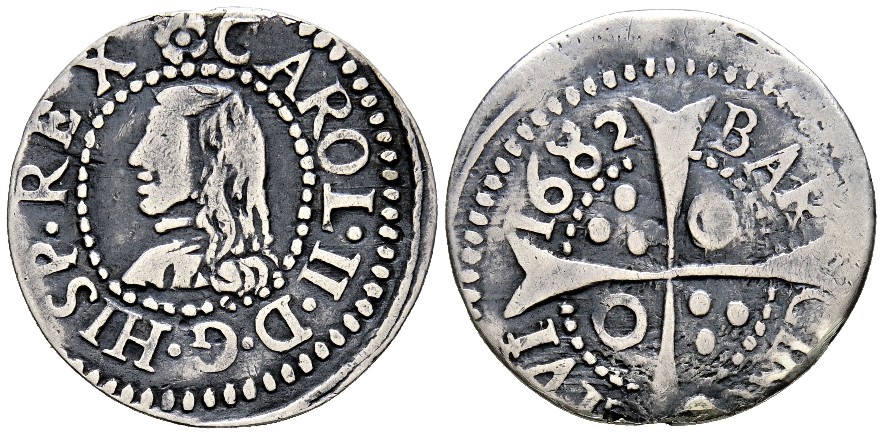 CARLOS II (1665-1700). 1 Croat. (Ar. 1,90g/21mm). 1682. Barcelona. (Cal-2019-209). MBC/MBC-.