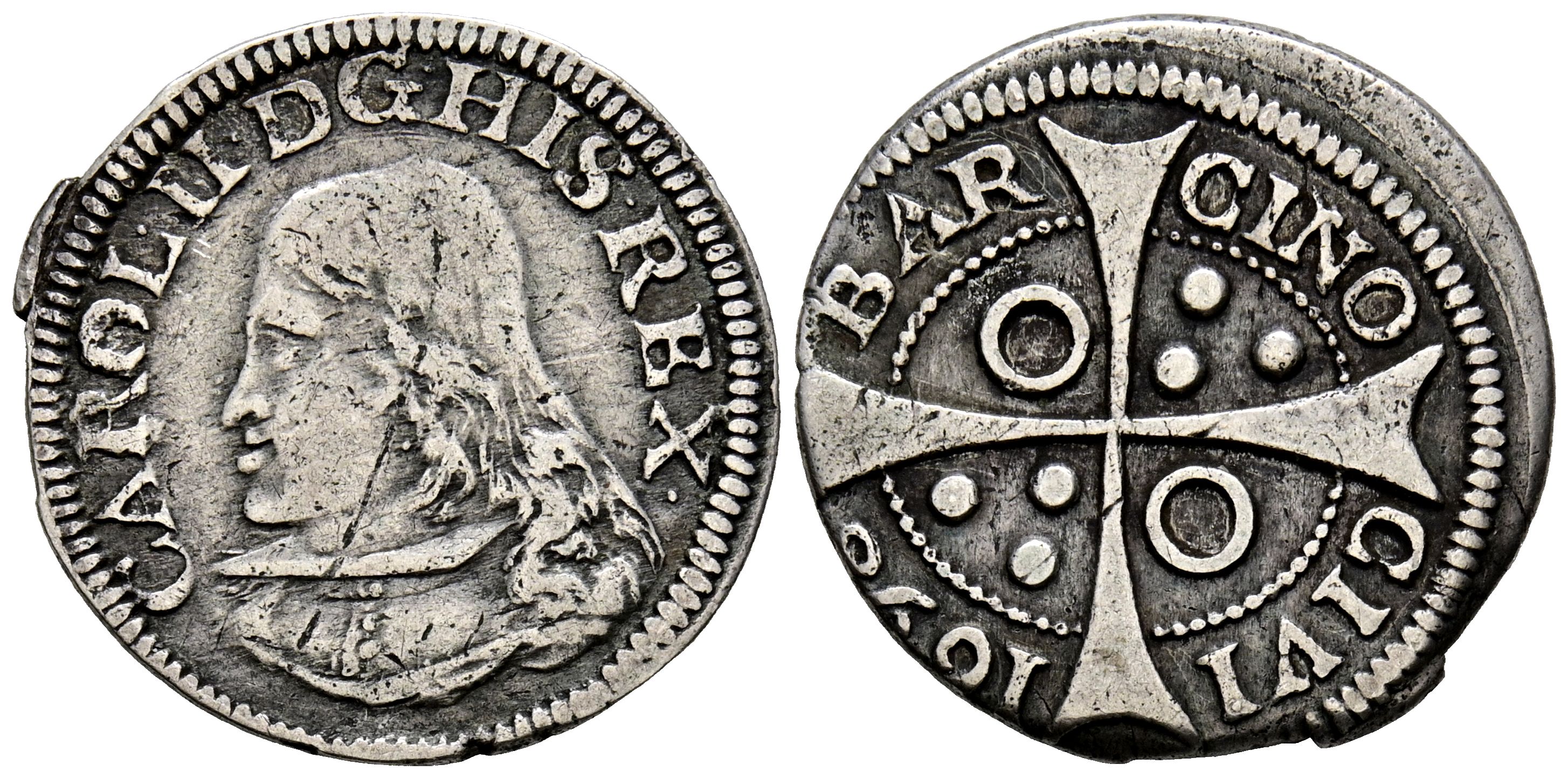 CARLOS II (1665-1700). 1 Croat. (Ar. 2,32g/20mm). 1698. Barcelona. (Cal-2019-212). MBC.