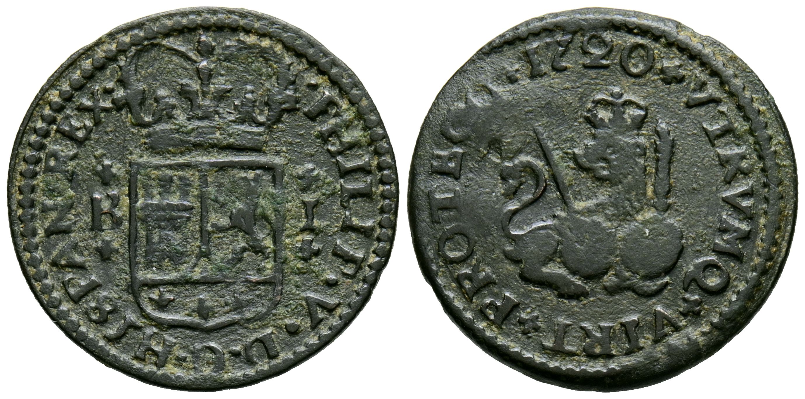 FELIPE V (1700-1746). 1 Maravedí. (Ae. 1,82g/19mm). 1720. Barcelona. (Cal-2019-45). MBC.