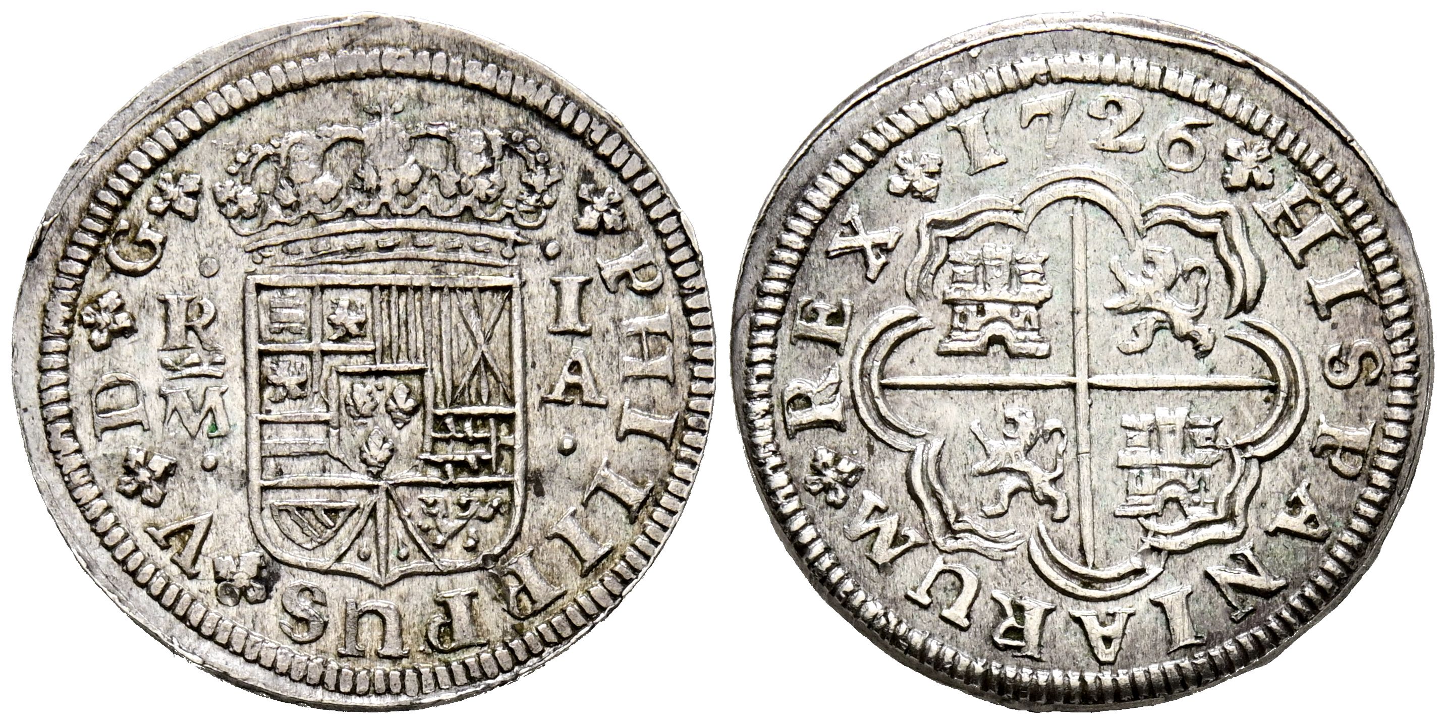 FELIPE V (1700-1746). 1 Real. (Ar. 3,09g/20mm). 1726. Madrid A. (Cal-2019-437). EBC-. Restos de brillo original. Escasa así.