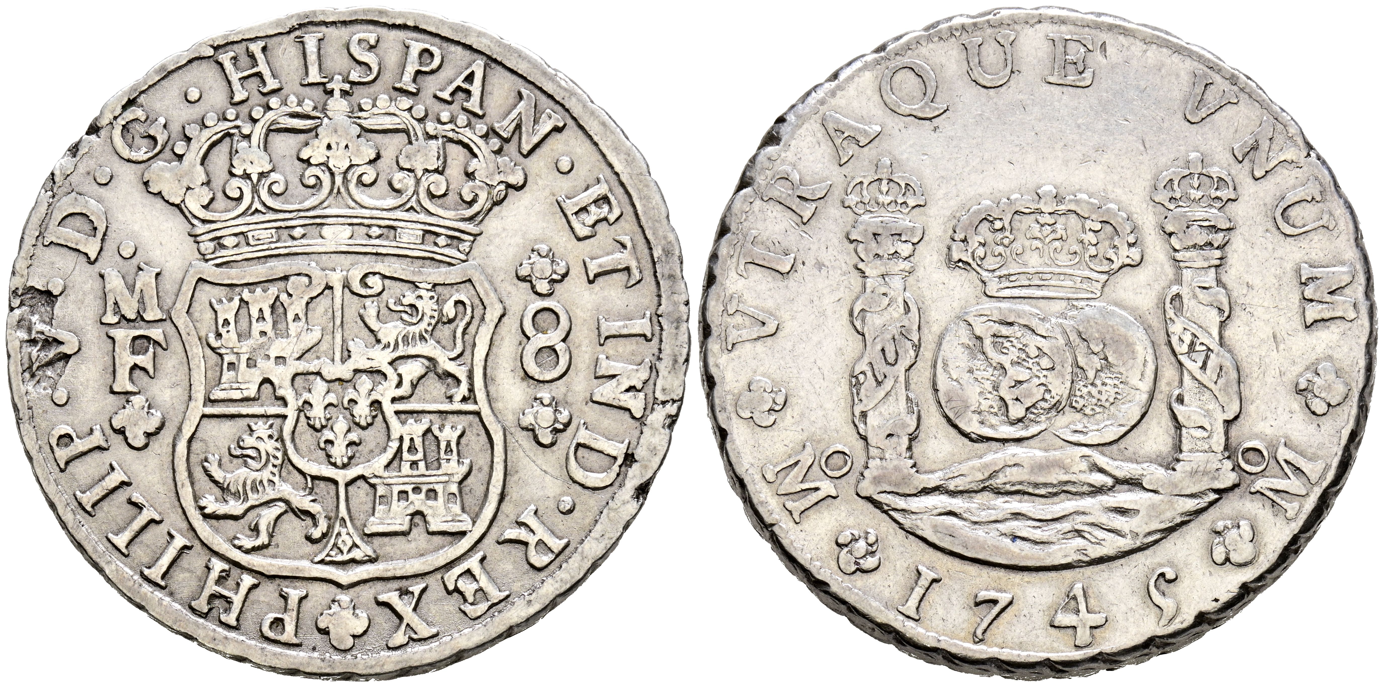 FELIPE V (1700-1746). 8 Reales (Ar. 26,94g/39mm). 1745. México MF. (Cal-2019-1468). MBC.