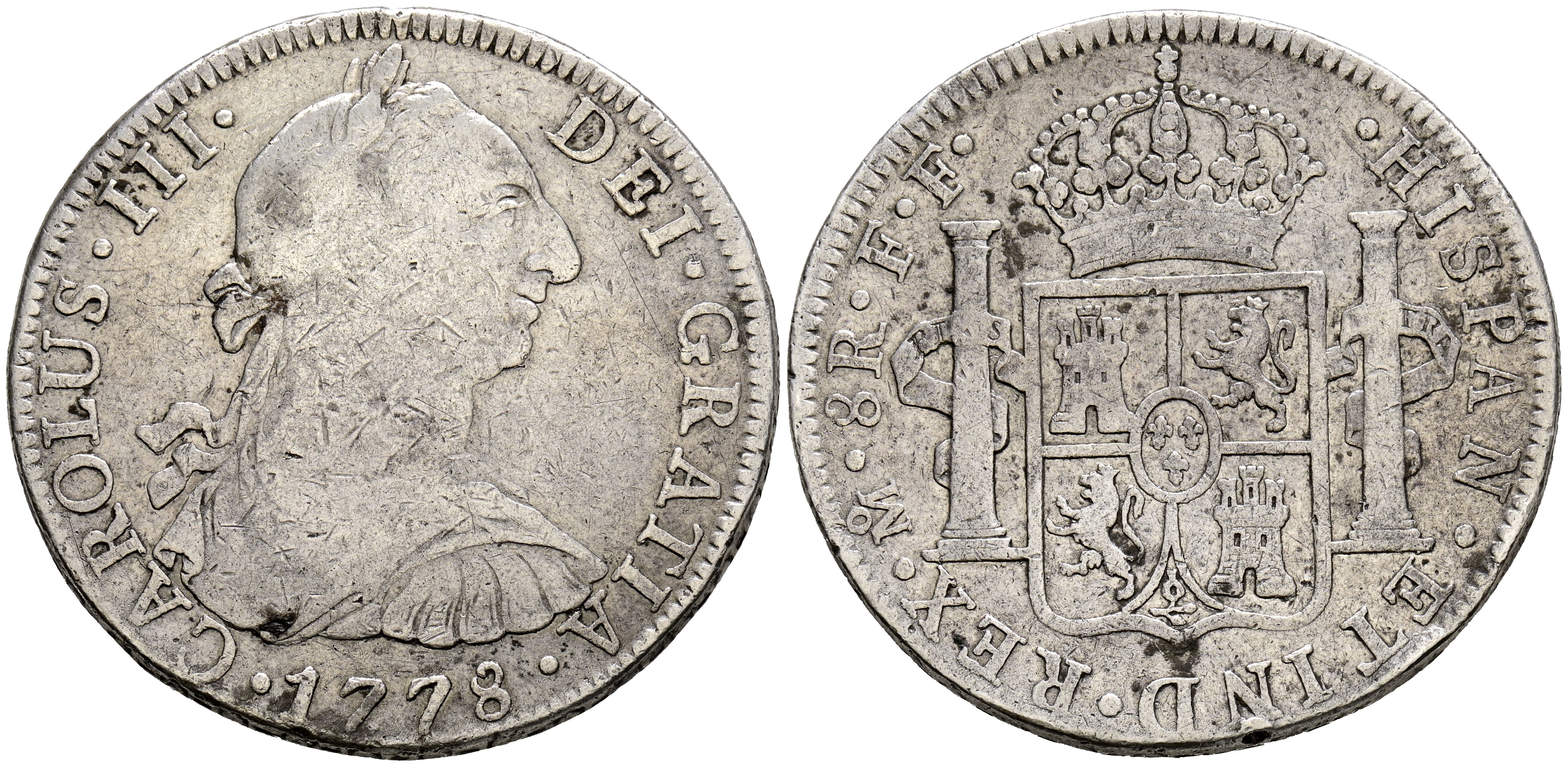 CARLOS III (1759-1788). 8 Reales. (Ar. 26,40g/39mm). 1778. México FF. (Cal-2019-1117). BC+.