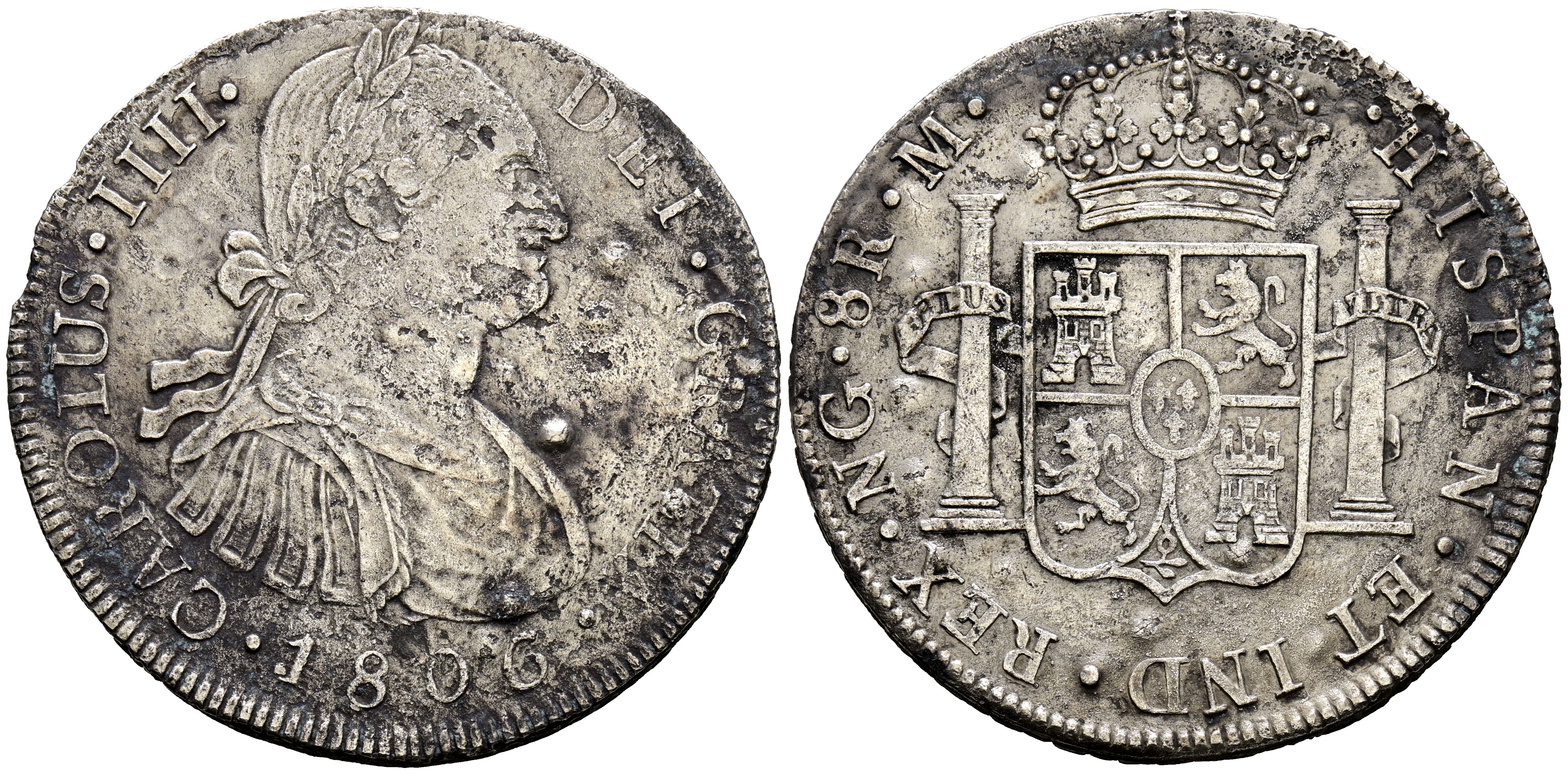 CARLOS IV (1788-1808). 8 Reales. (Ar. 26,58g/39mm). 1806. Guatemala M. (Cal-2019-901). MBC-. Oxidaciones.