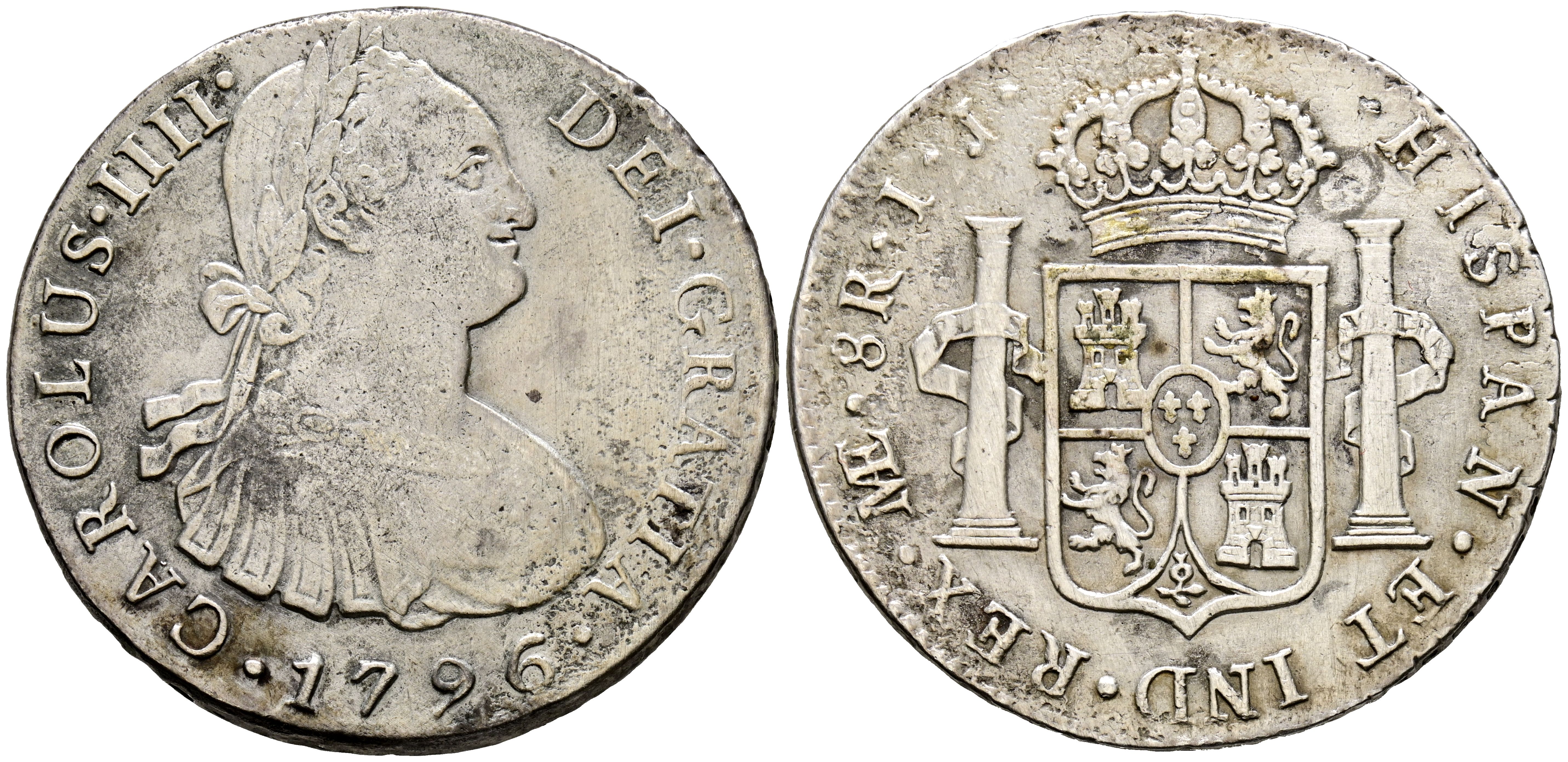 CARLOS IV (1788-1808). 8 Reales. (Ar. 26,21g/39mm). 1796. Lima IJ. (Cal-2019-912). MBC-. Oxidaciones limpiadas.