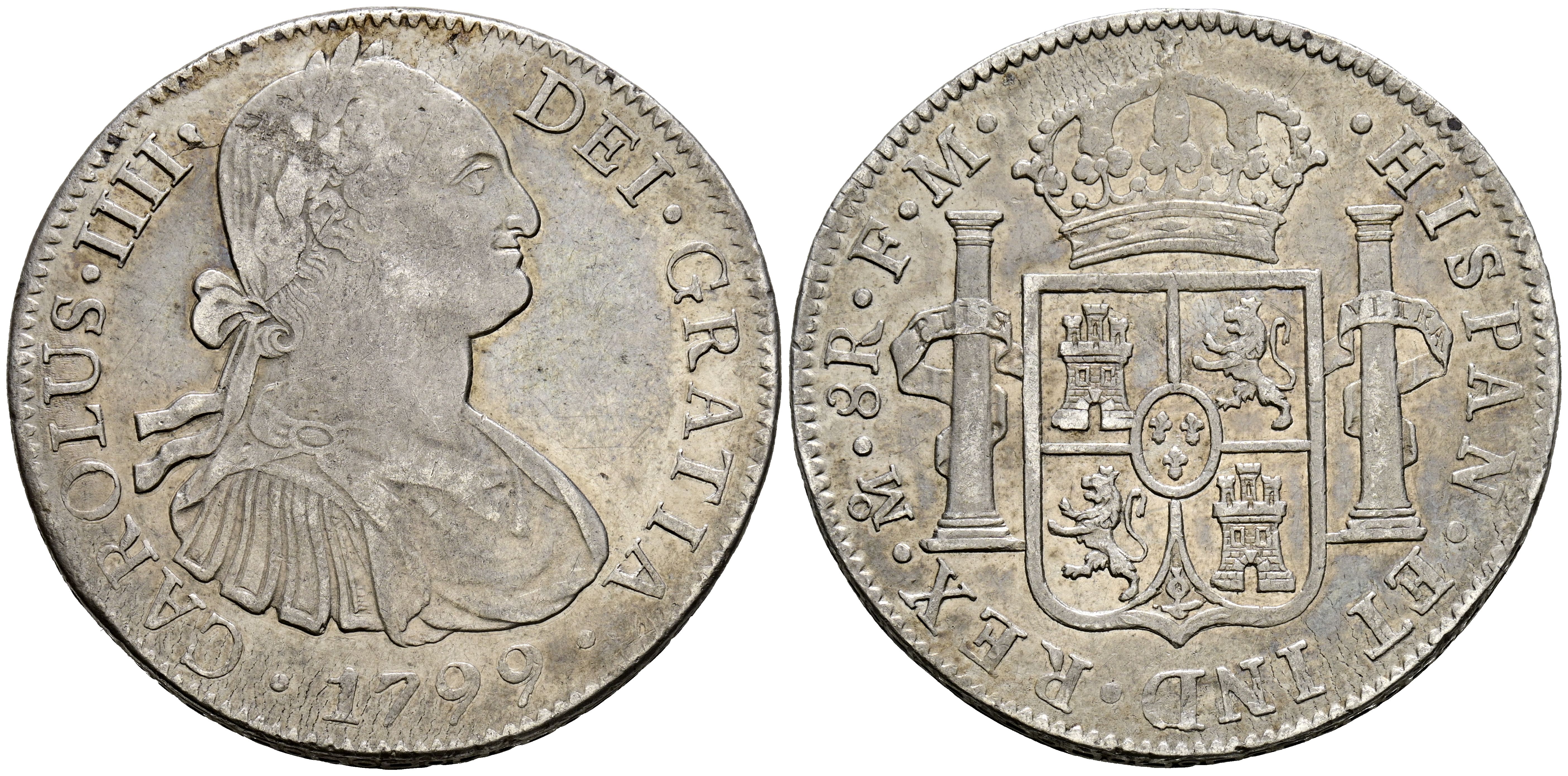 CARLOS IV (1788-1808). 8 Reales. (Ar. 26,87g/39mm). 1799. México FM. (Cal-2019-963). MBC/MBC+.