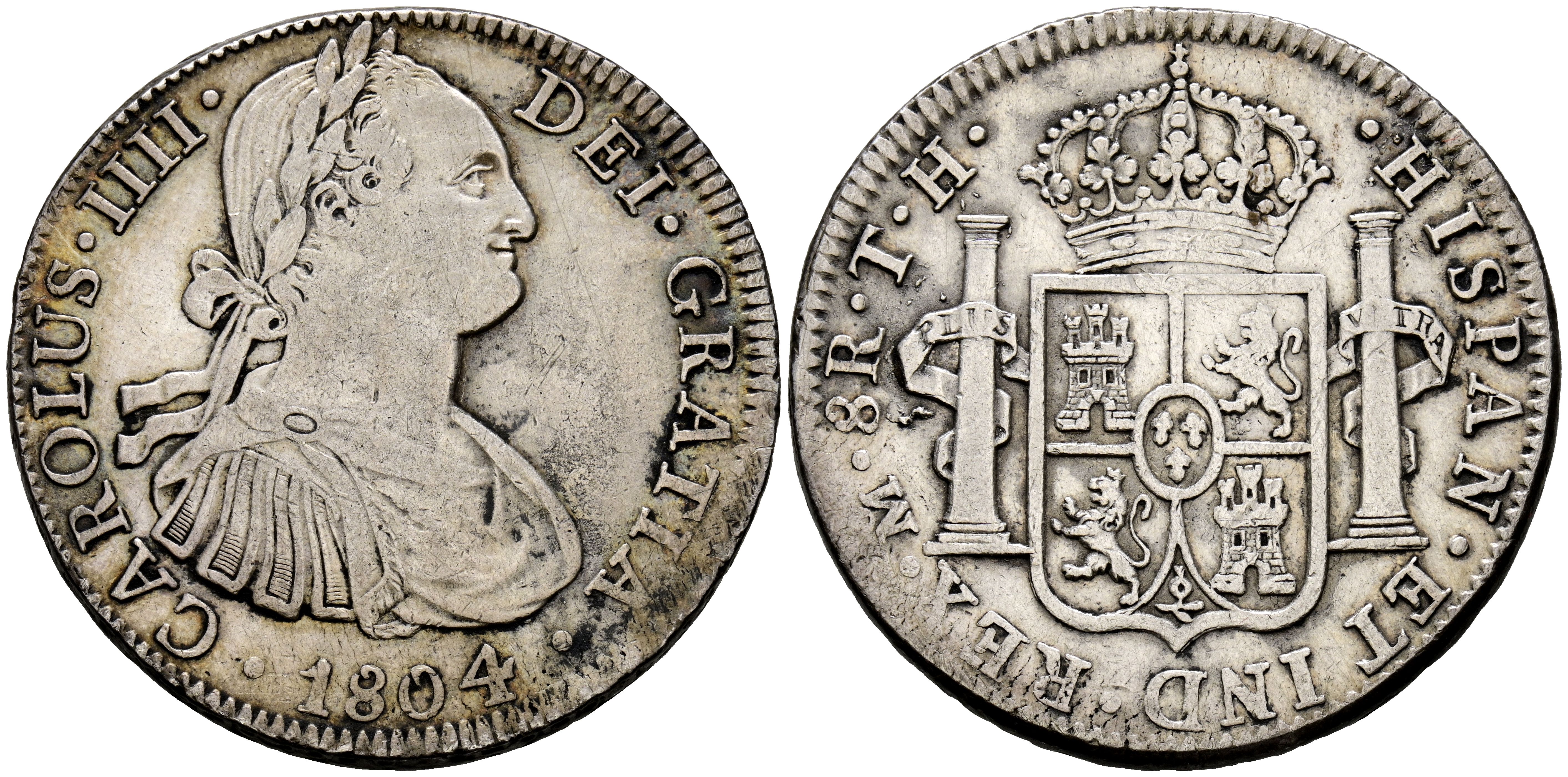CARLOS IV (1788-1808). 8 Reales. (Ar. 26,94g/39mm). 1804. México TH. (Cal-2019-980). MBC.