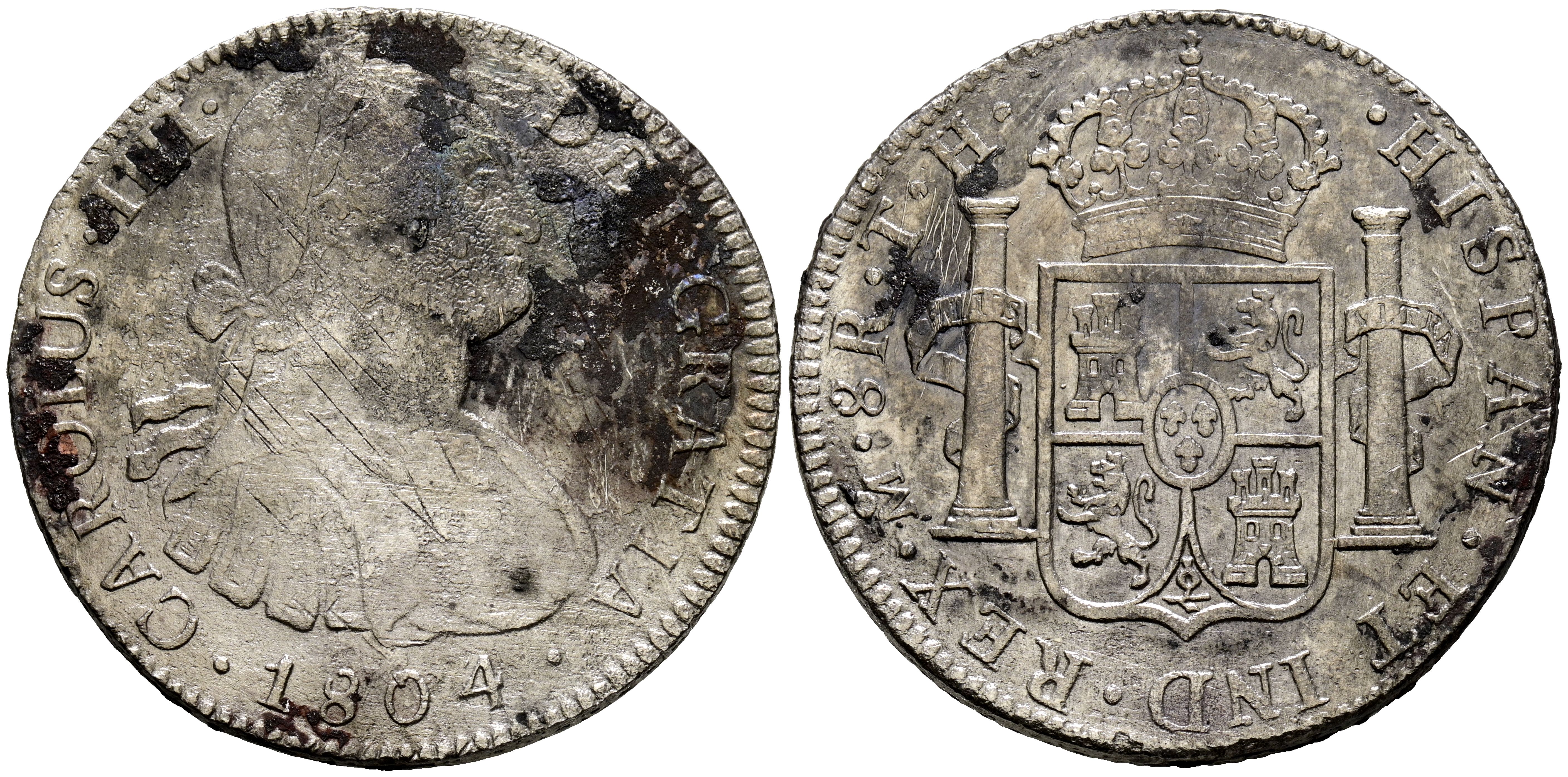 CARLOS IV (1788-1808). 8 Reales. (Ar. 26,22g/39mm). 1804. México TH. (Cal-2019-980). MBC-. Oxidaciones limpiadas.