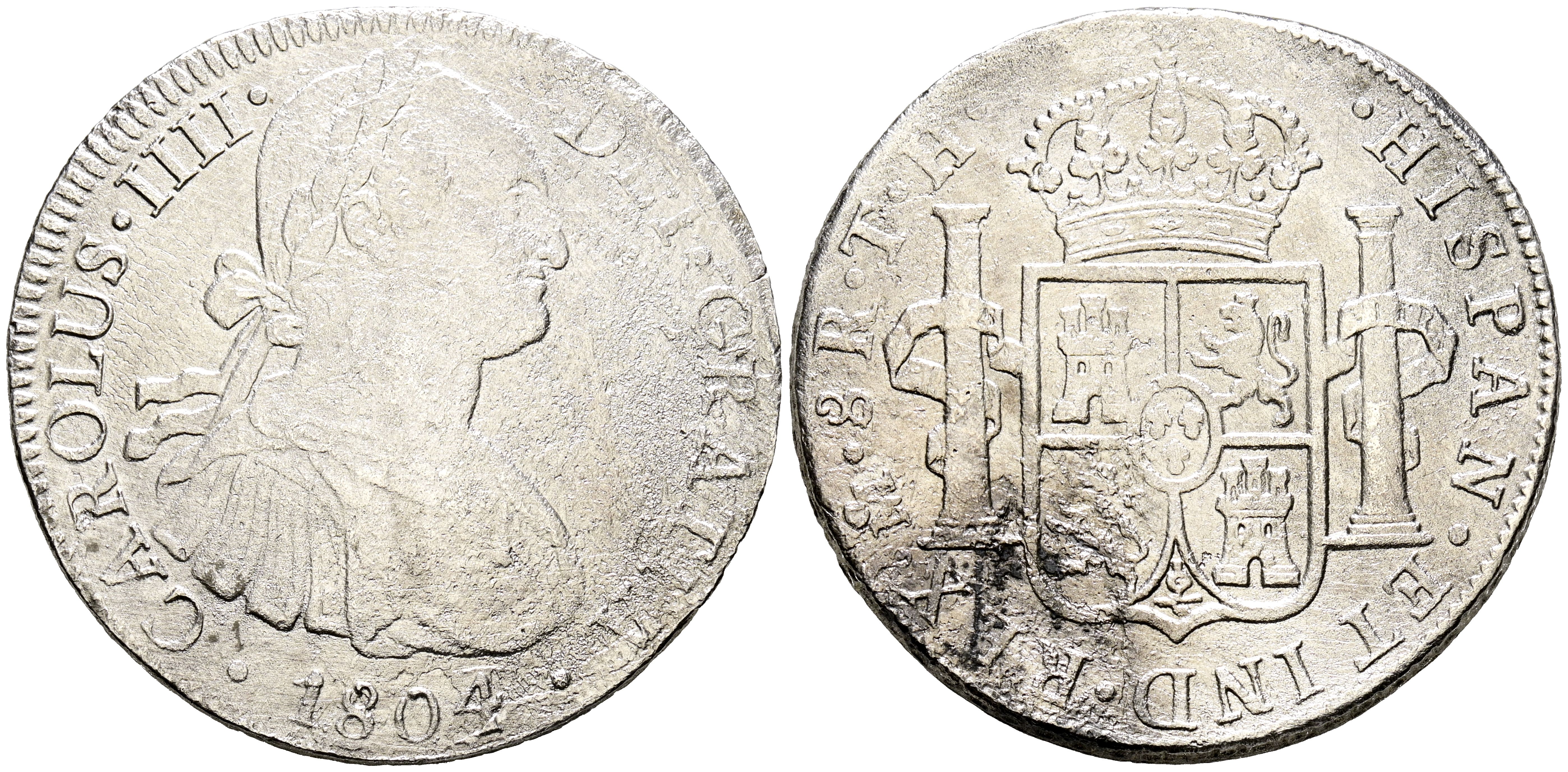 CARLOS IV (1788-1808). 8 Reales. (Ar. 26,22g/39mm). 1804. México TH. (Cal-2019-980). MBC. Oxidaciones limpiadas.