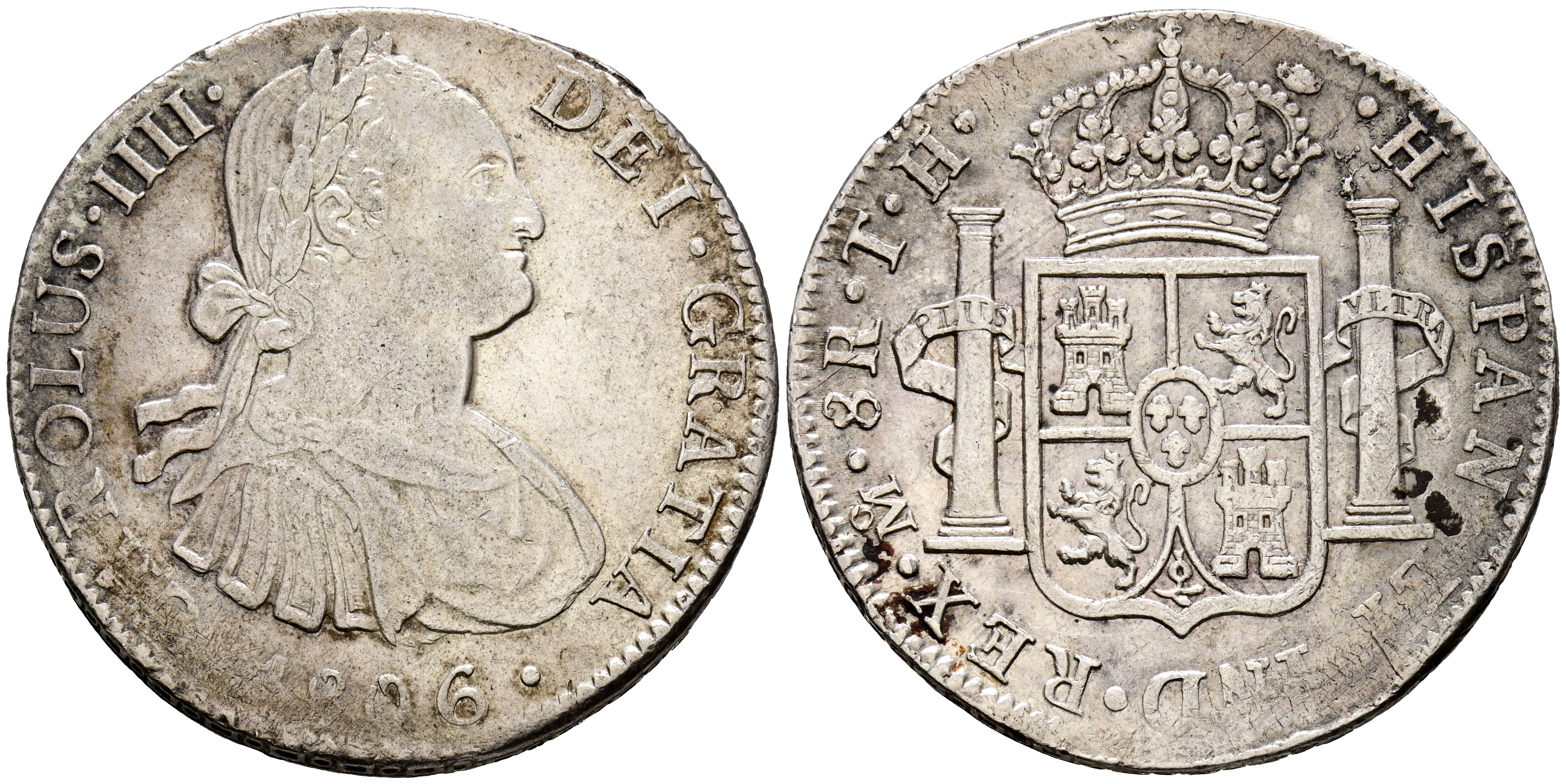 CARLOS IV (1788-1808). 8 Reales. (Ar. 26,99g/39mm). 1806. México TH. (Cal-2019-984). MBC.