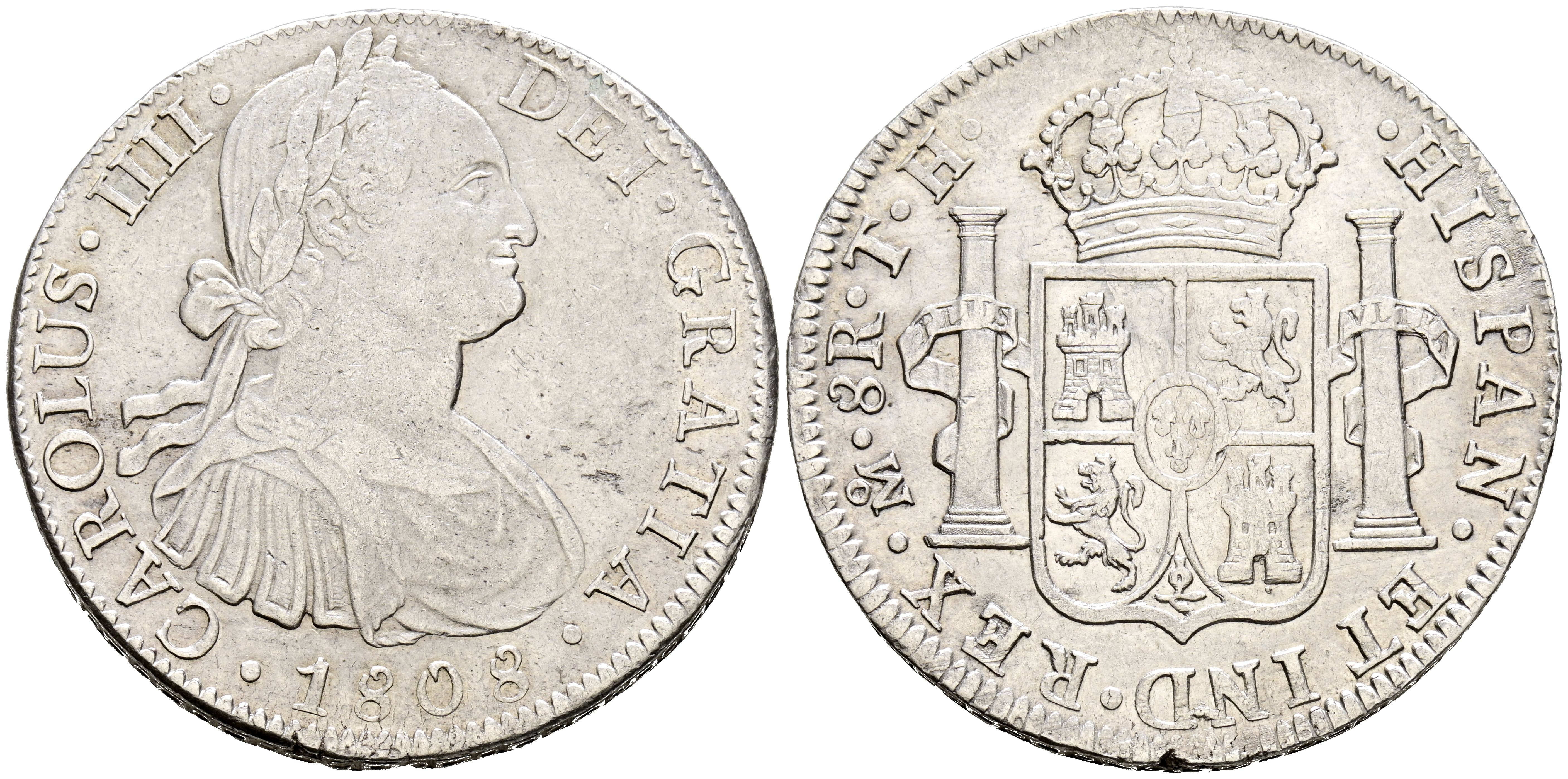CARLOS IV (1788-1808). 8 Reales. (Ar. 26.91g/40mm). 1808. Mexico TH. (Cal-2019-988). MBC.