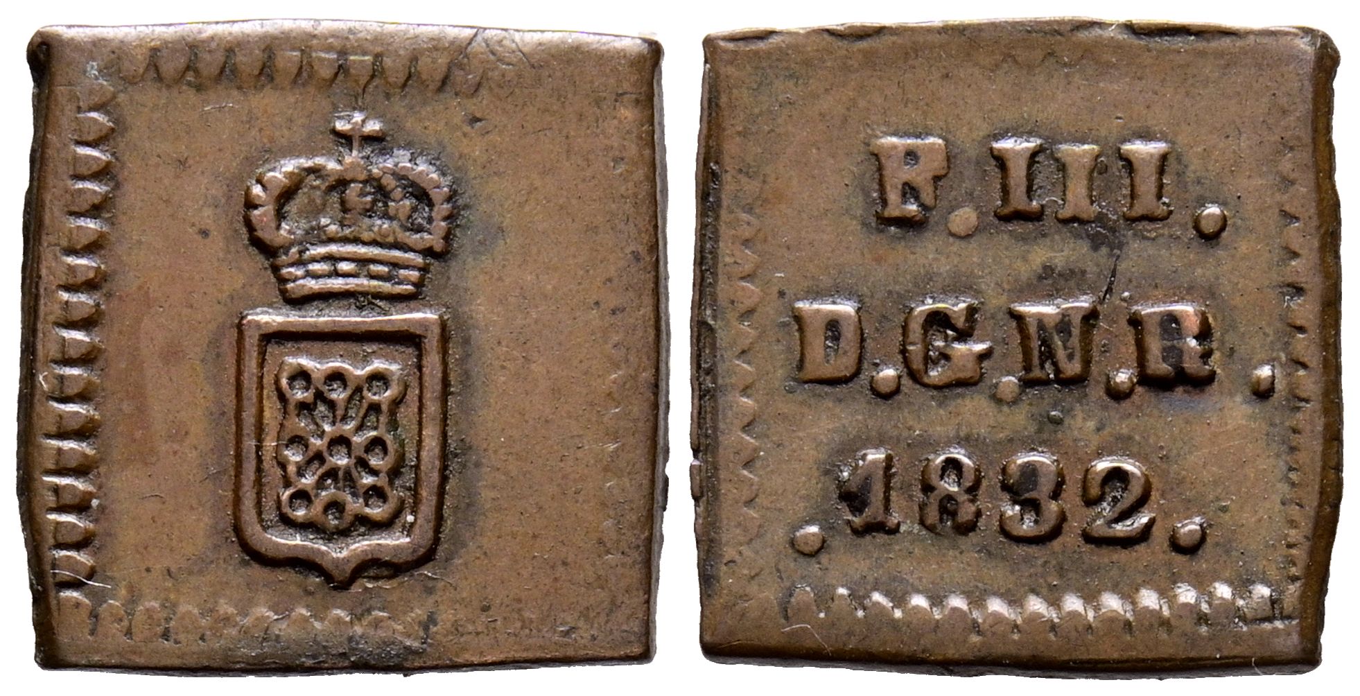 FERNANDO VII (1808-1833). 1/2 Maravedí (Ae. 1,08g/13mm). 1832. Pamplona. (Cal-2019-30). MBC+.
