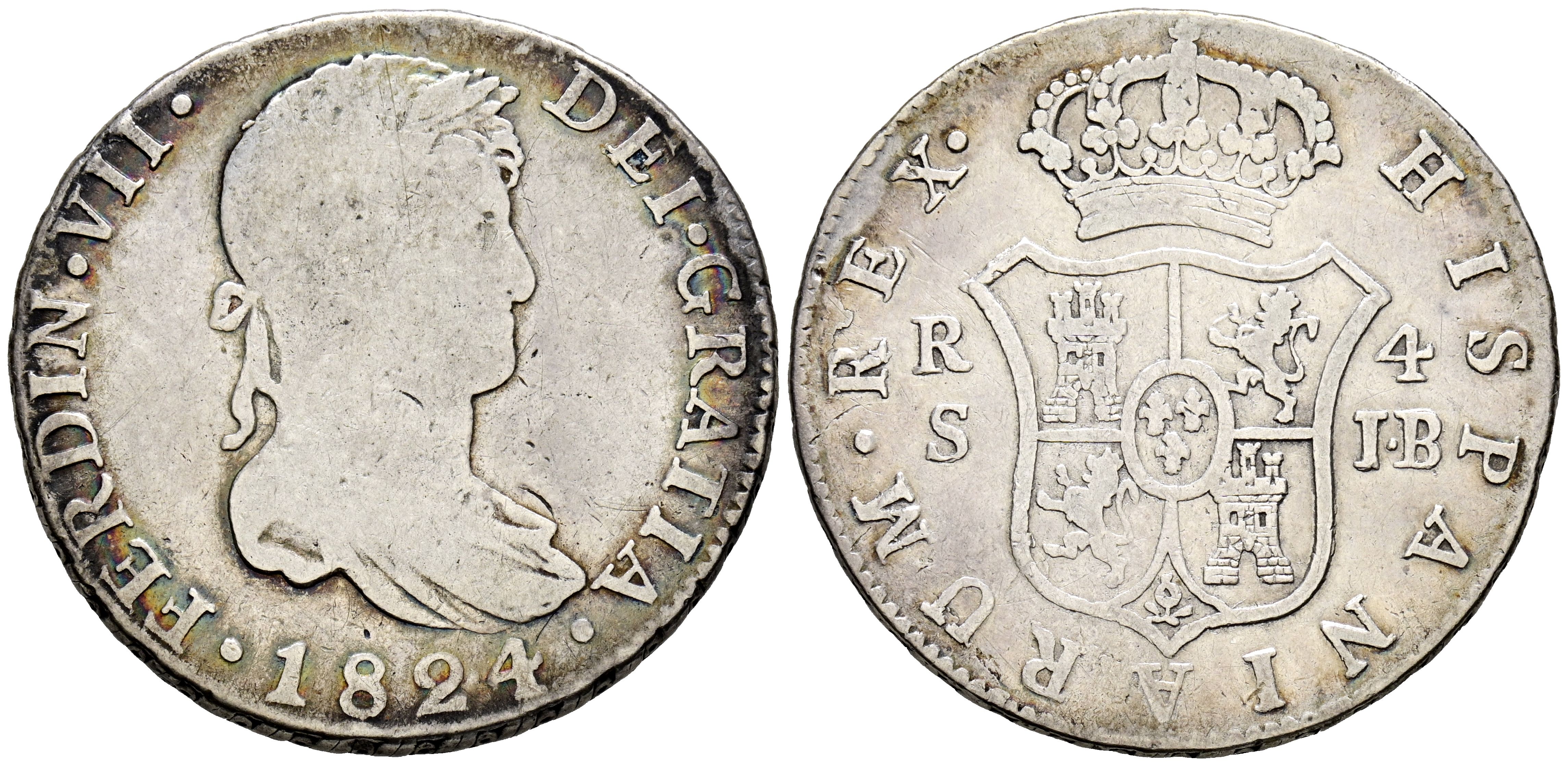 FERNANDO VII (1808-1833). 4 Reales. (Ar. 13,22g/32mm). 1824. Sevilla JB. (Cal-2019-1131). BC/BC+.