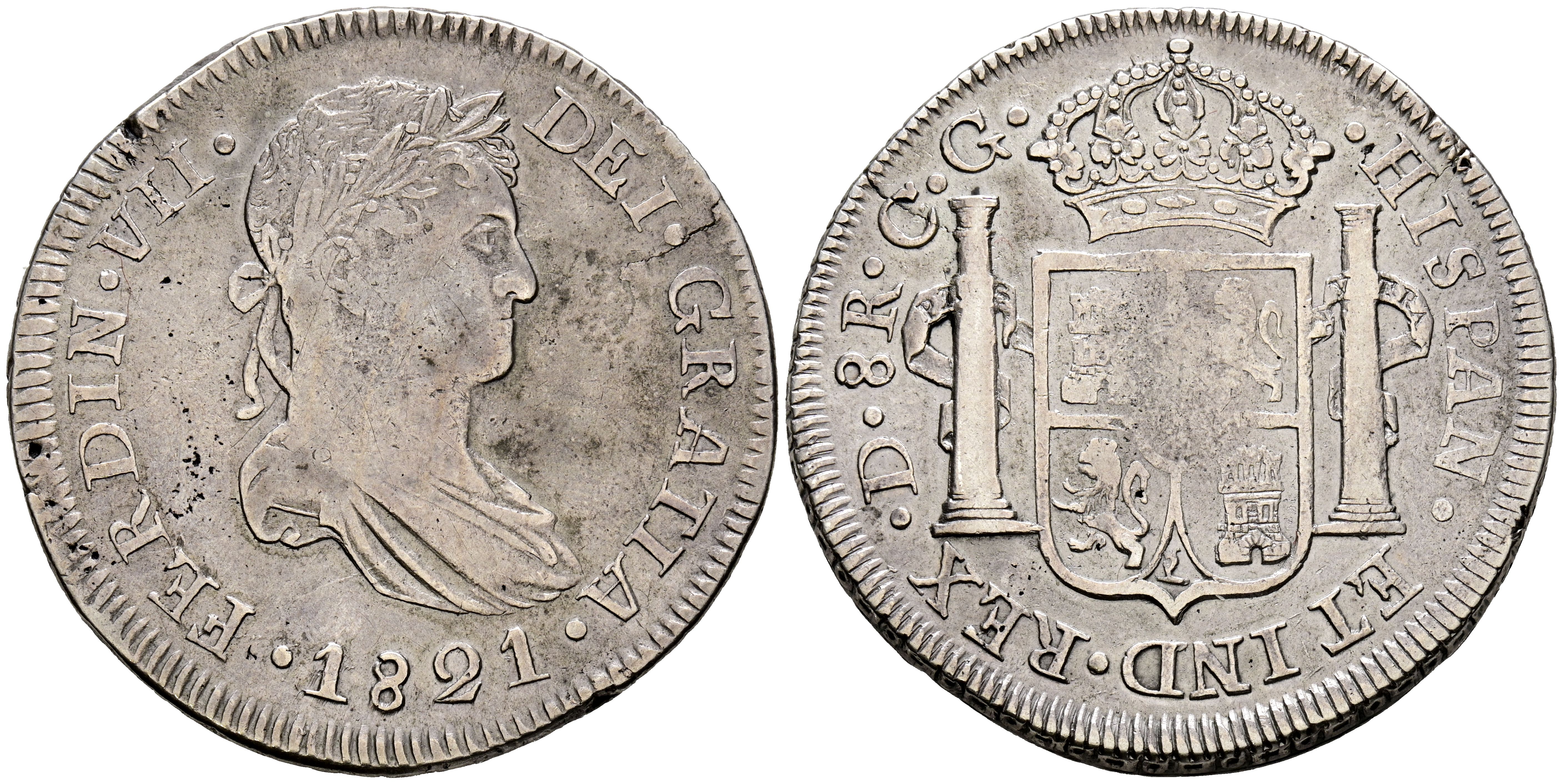 FERNANDO VII (1808-1833). 8 Reales. (Ar. 25,70g/40mm). 1821. Durango CG. (Cal-2019-1199). MBC.