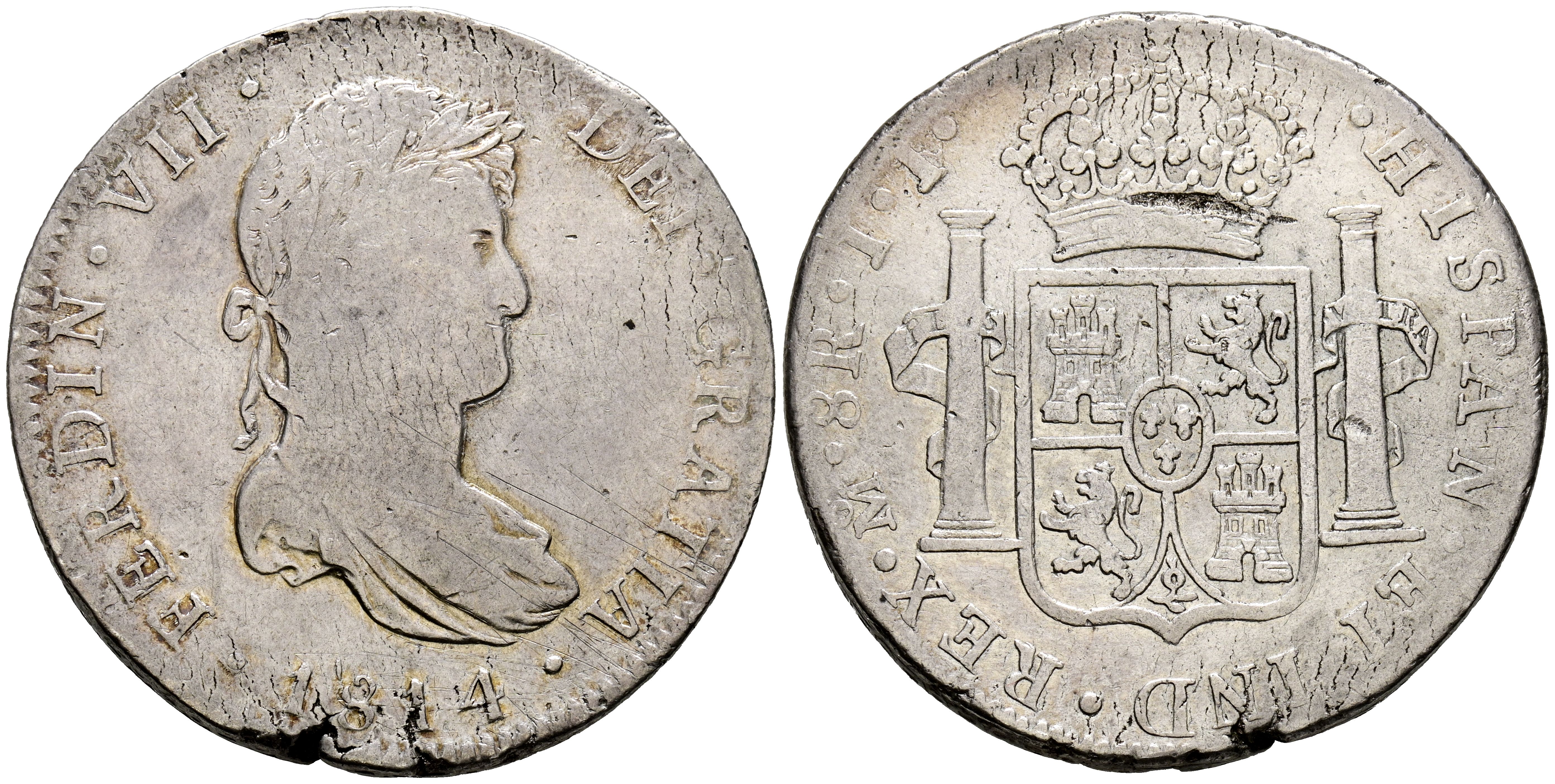 FERNANDO VII (1808-1833). 8 Reales. (Ar. 26,60g/39mm). 1814. México JJ. (Cal-2019-1326). BC+.