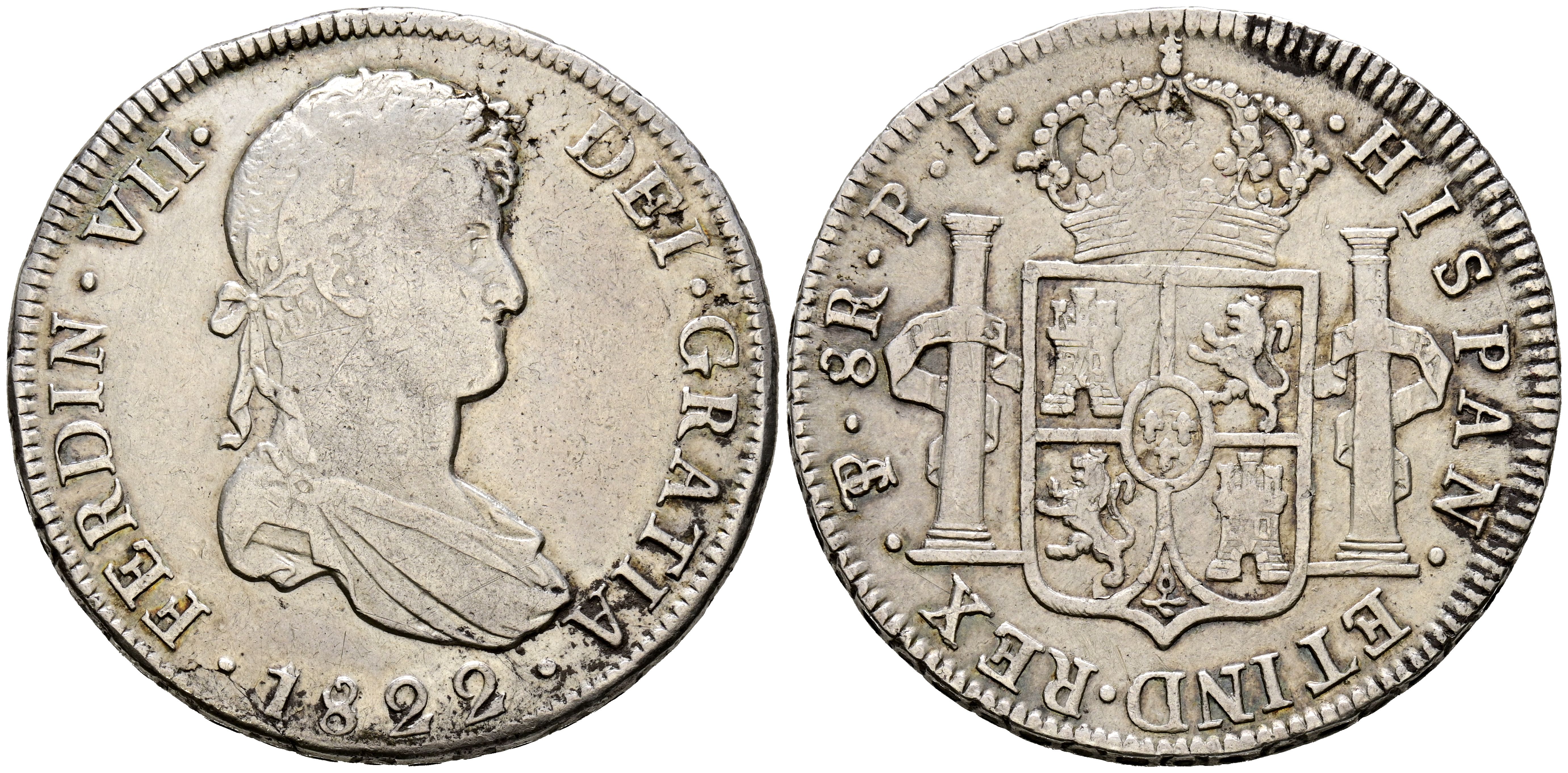 FERNANDO VII (1808-1833). 8 Reales. (Ar. 26,57g/39mm). 1822. Potosí PJ. (Cal-2019-1386). MBC-.