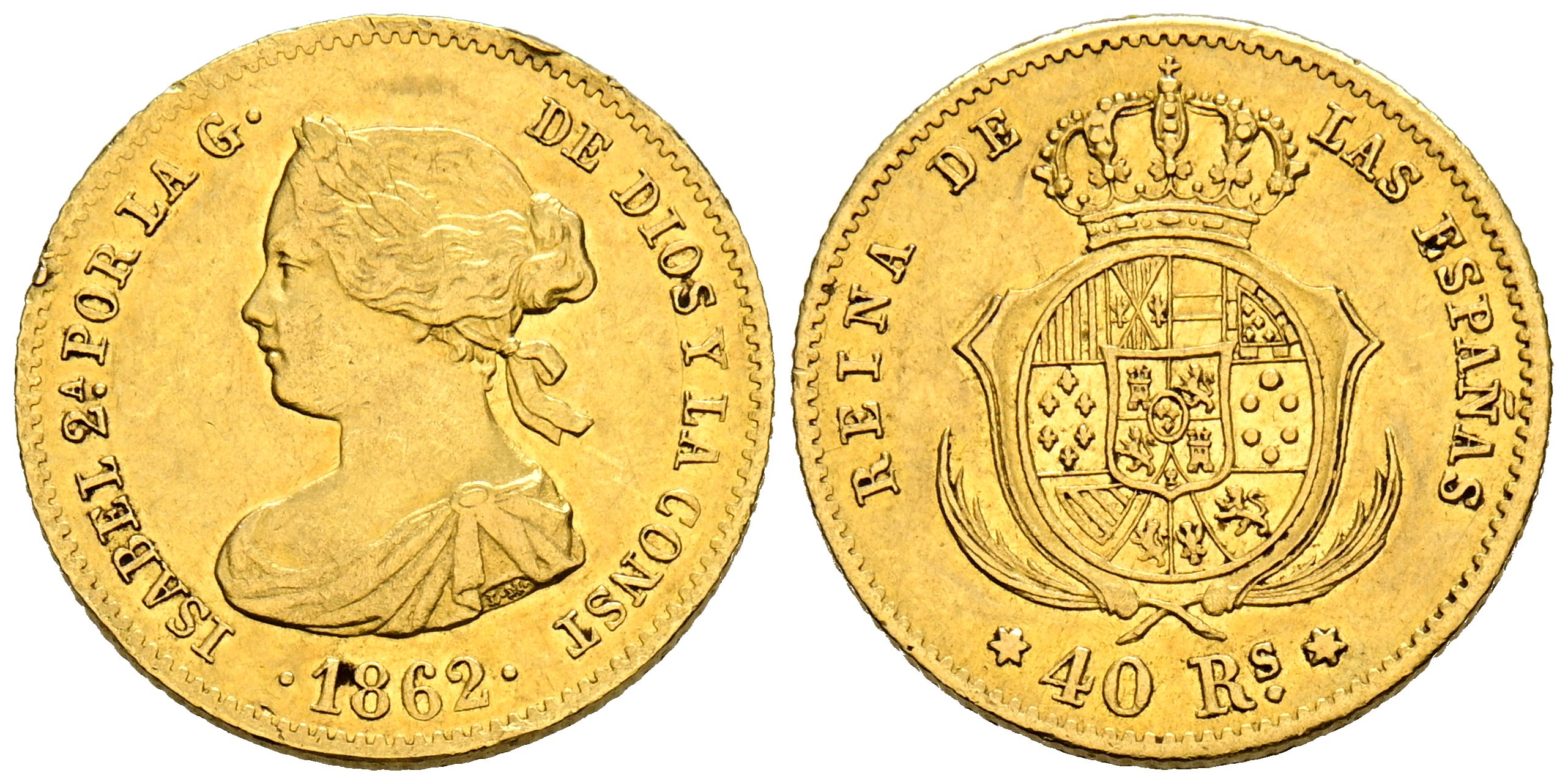 ISABEL II (1833-1868). 40 Reales. (Au. 3,34g/18mm). 1862. Madrid. (Cal-2019-681). MBC+.