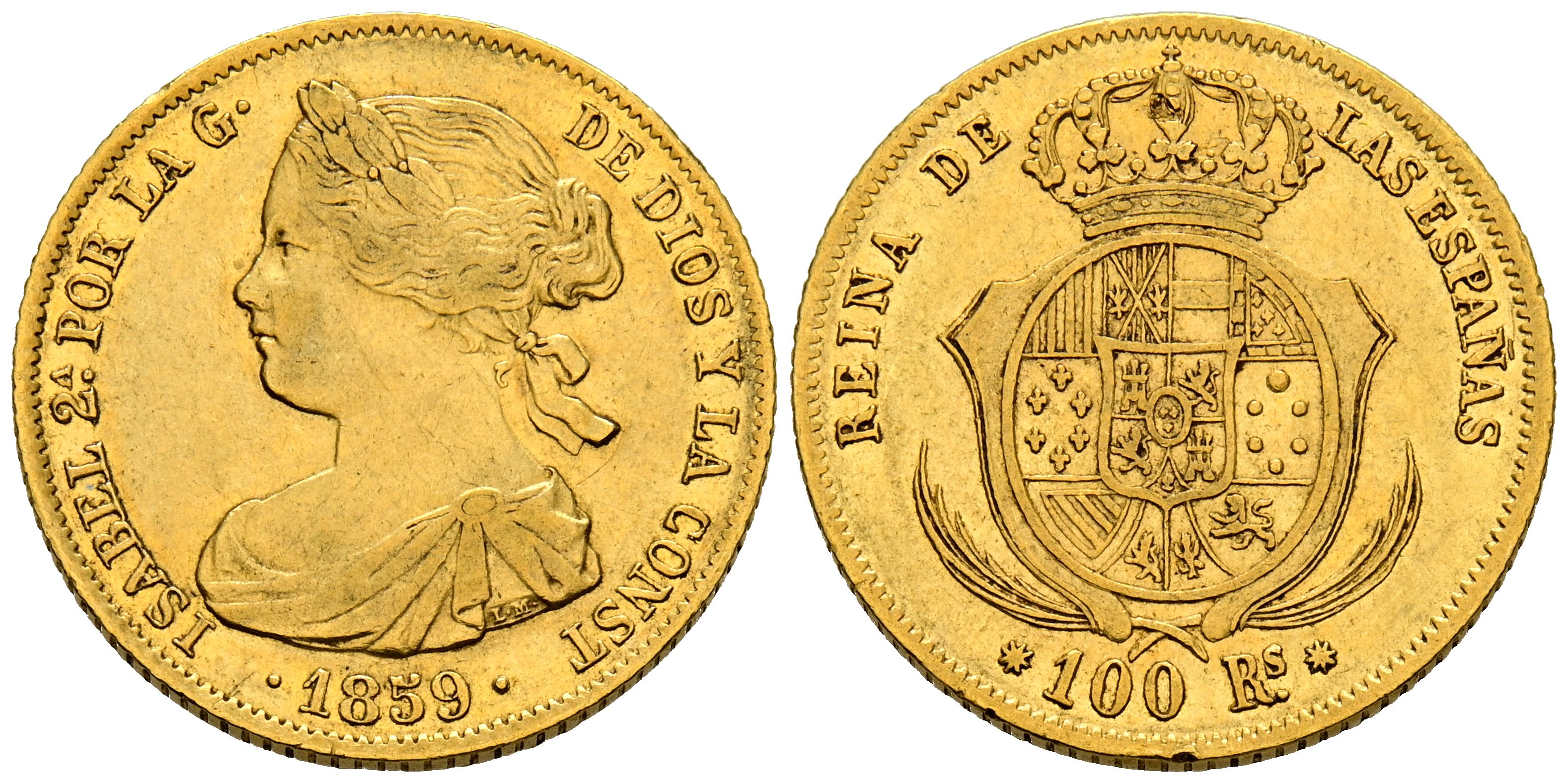 ISABEL II (1833-1868). 100 Reales. (Au. 8,37g/22mm). 1857. Barcelona. (Cal-2019-770). MBC+.