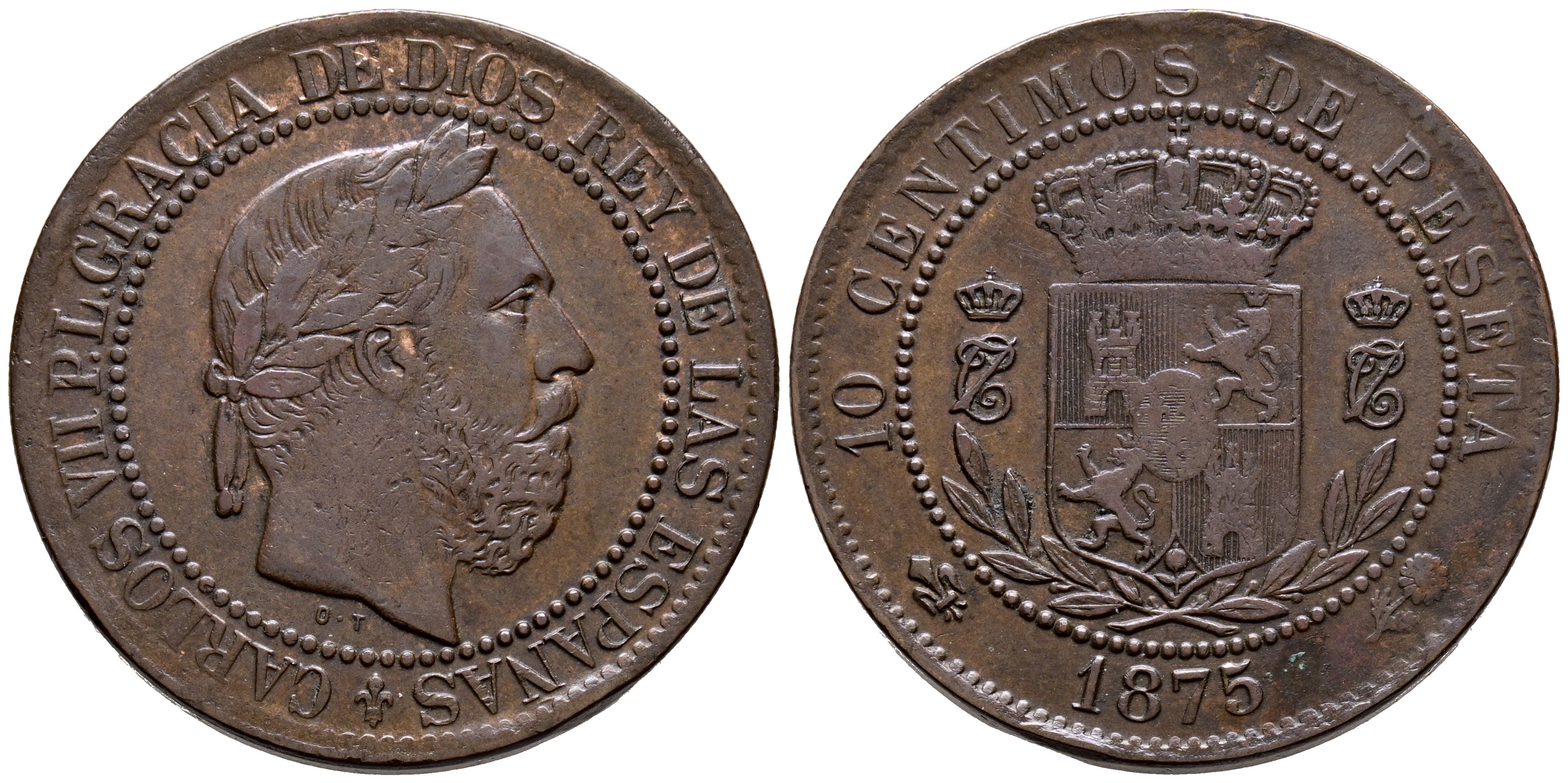 CARLOS VII (1868-1909). 10 Céntimos. (Ae. 9,96g/30mm). 1875. Oñate. (Cal-2019-5). MBC+.