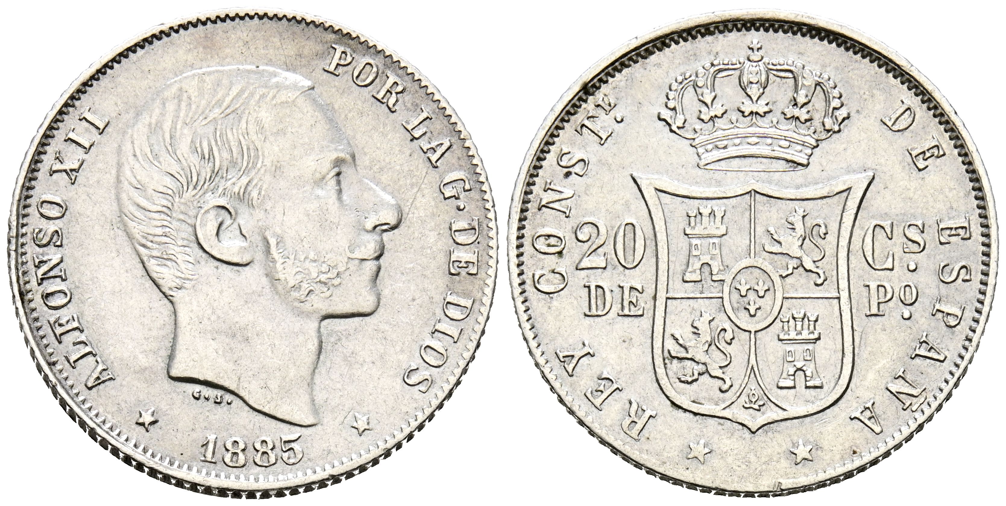 ALFONSO XII (1874-1885). 20 Centavos. (Ar. 5,06g/23mm). 1885. Manila. (Cal-2019-111). MBC+.