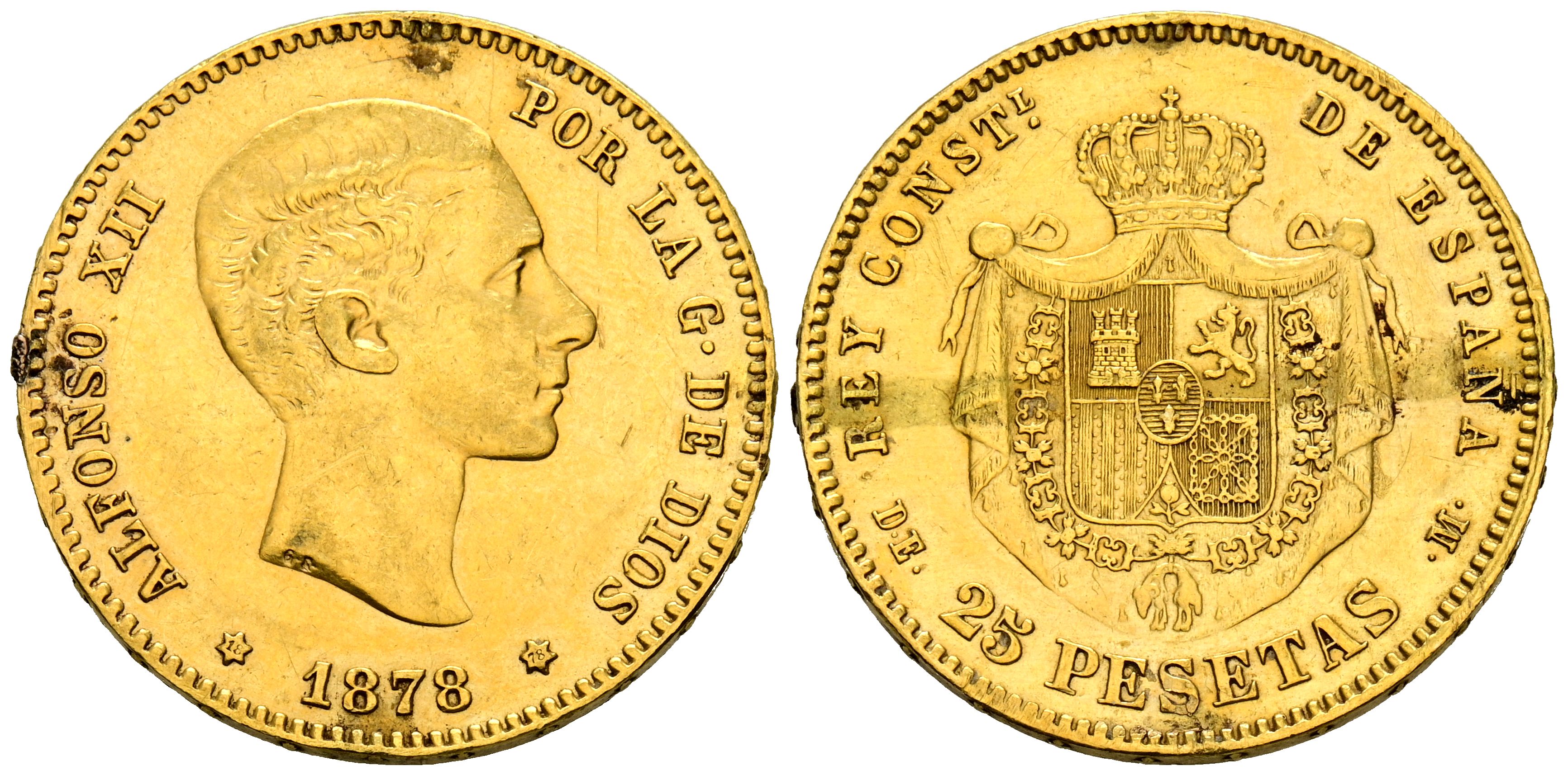 ALFONSO XII (1874-1885). 25 Pesetas. (Au. 7,98g/24mm). 1878 *18-78. Madrid DEM. (Cal-2019-70). MBC. Restos de soldadura. Usada como joya.