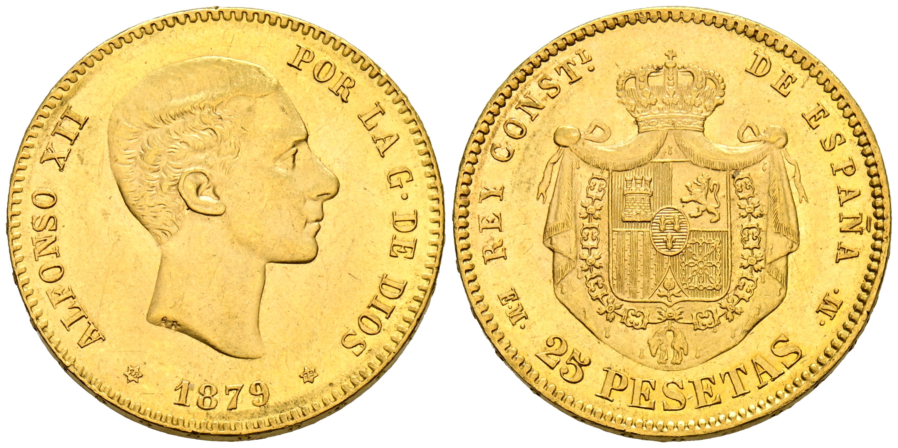ALFONSO XII (1874-1885). 25 Pesetas. (Au. 8,06g/24mm). 187 *18-79. Madrid EMM. (Cal-2019-74). EBC-.