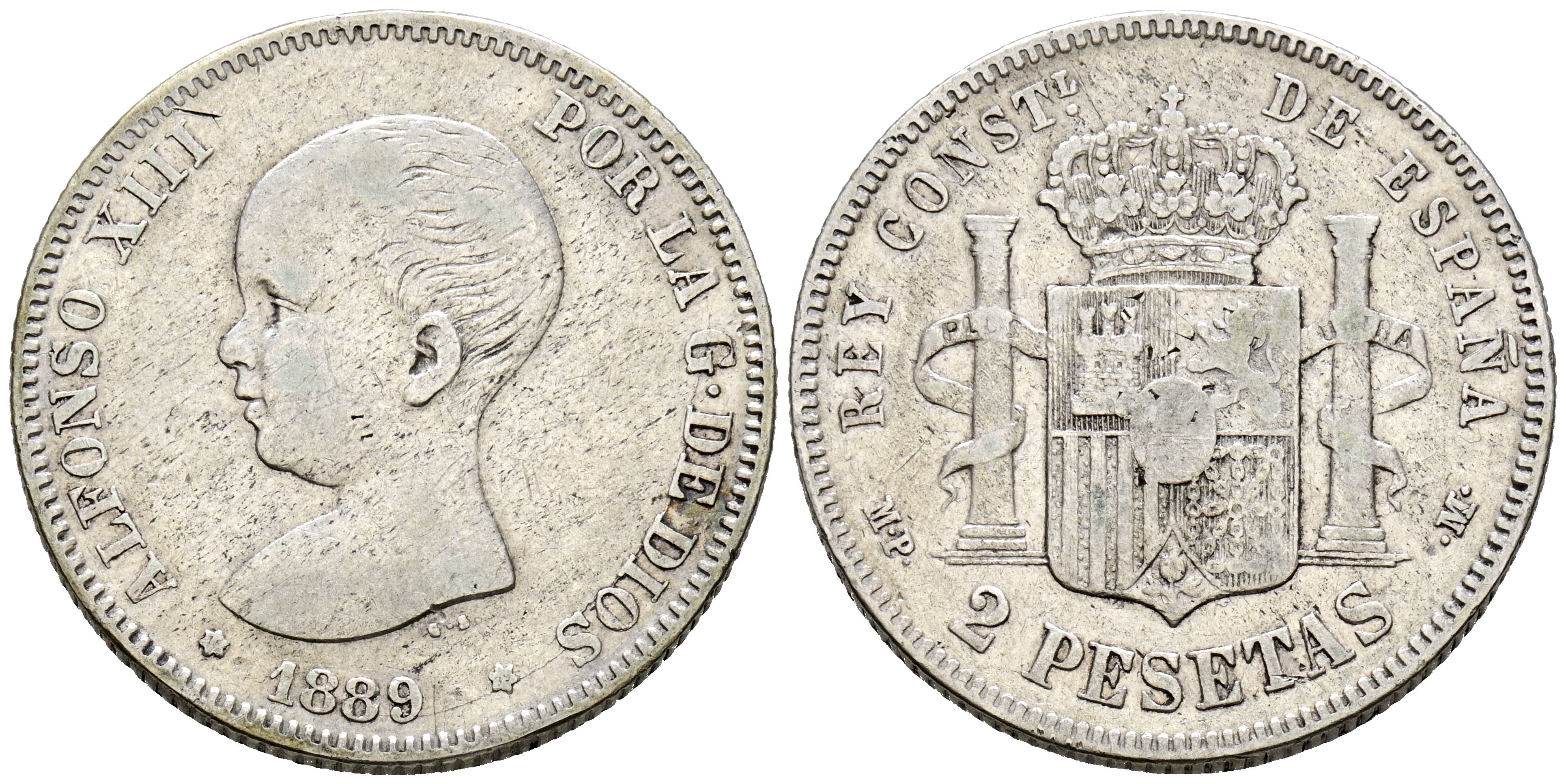 ALFONSO XIII (1885-1931). 2 Pesetas. (Ar. 9,85g/27mm). 1889 *18-89. Madrid MPM. (Cal-2019-82). MBC-.
