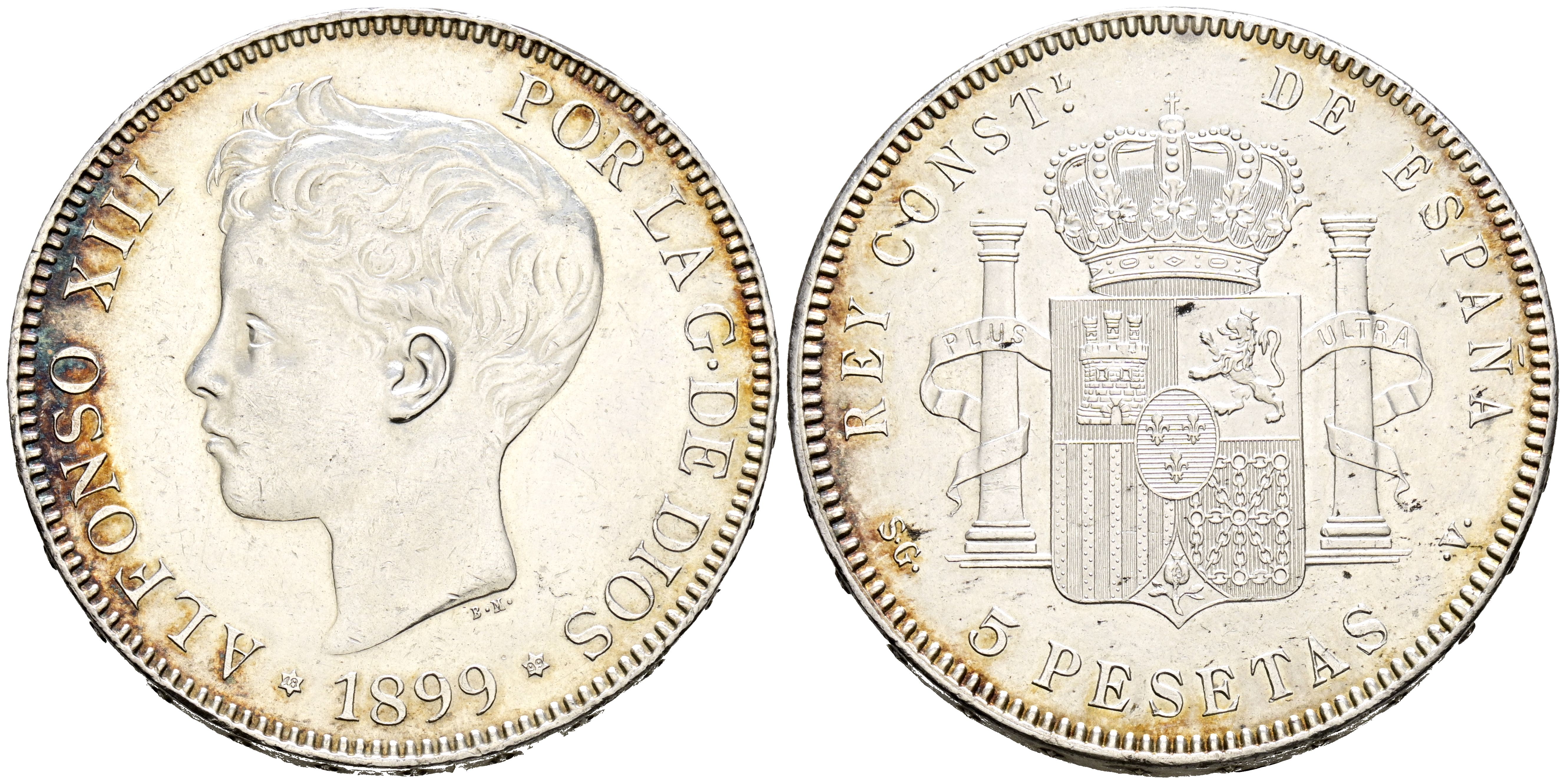ALFONSO XIII (1885-1931). 5 Pesetas. (Ar. 24,88g/37mm). 1899. Madrid SGV. (Cal-2019-110). EBC-/EBC. Limpiada.