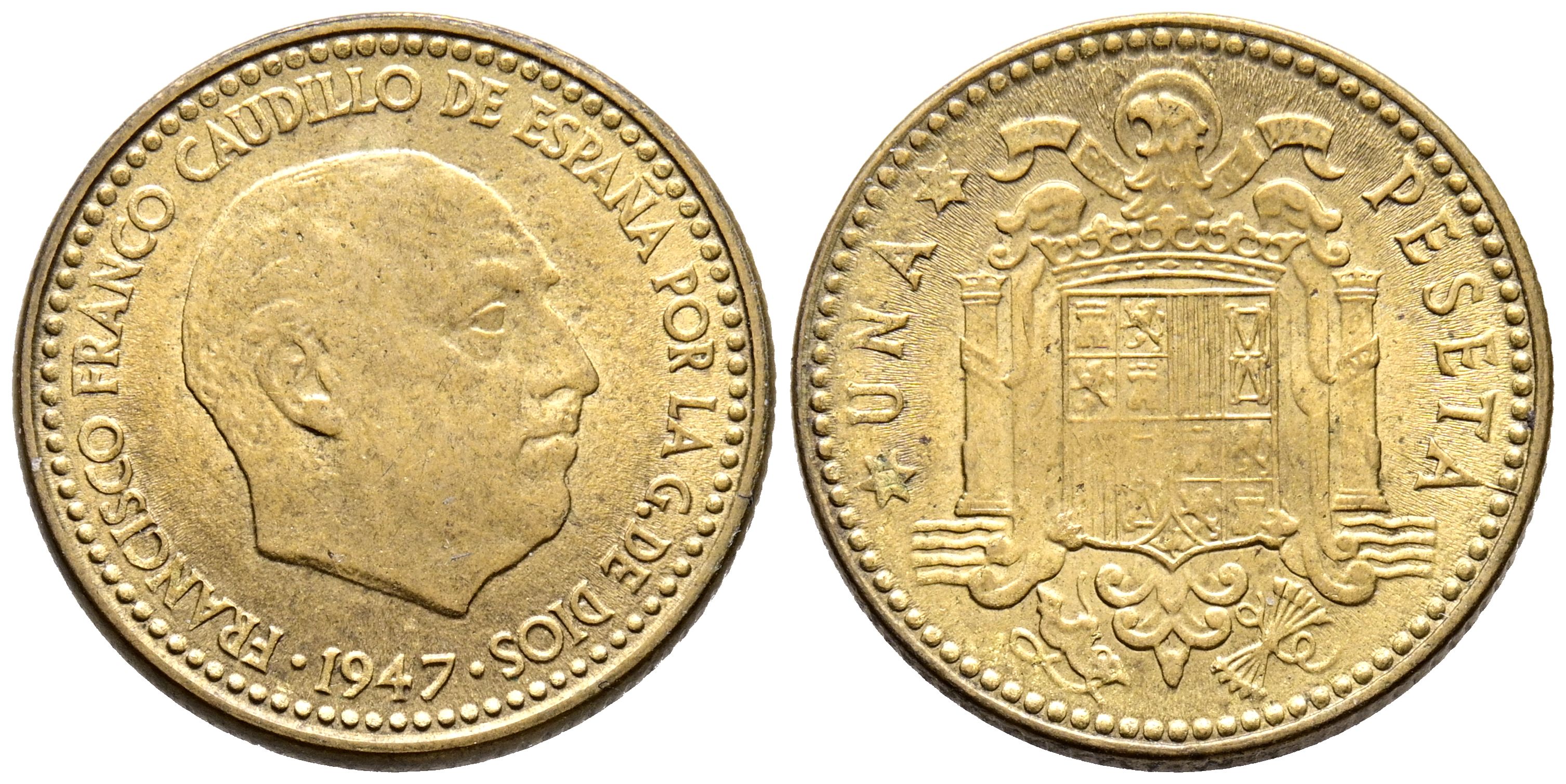 ESTADO ESPAÑOL (1936-1975). 1 Peseta. (Al-Cu. 3,41g/21mm). 1947 *19-54. Madrid. (Cal-2019-54). EBC+. Estrellas flojas.
