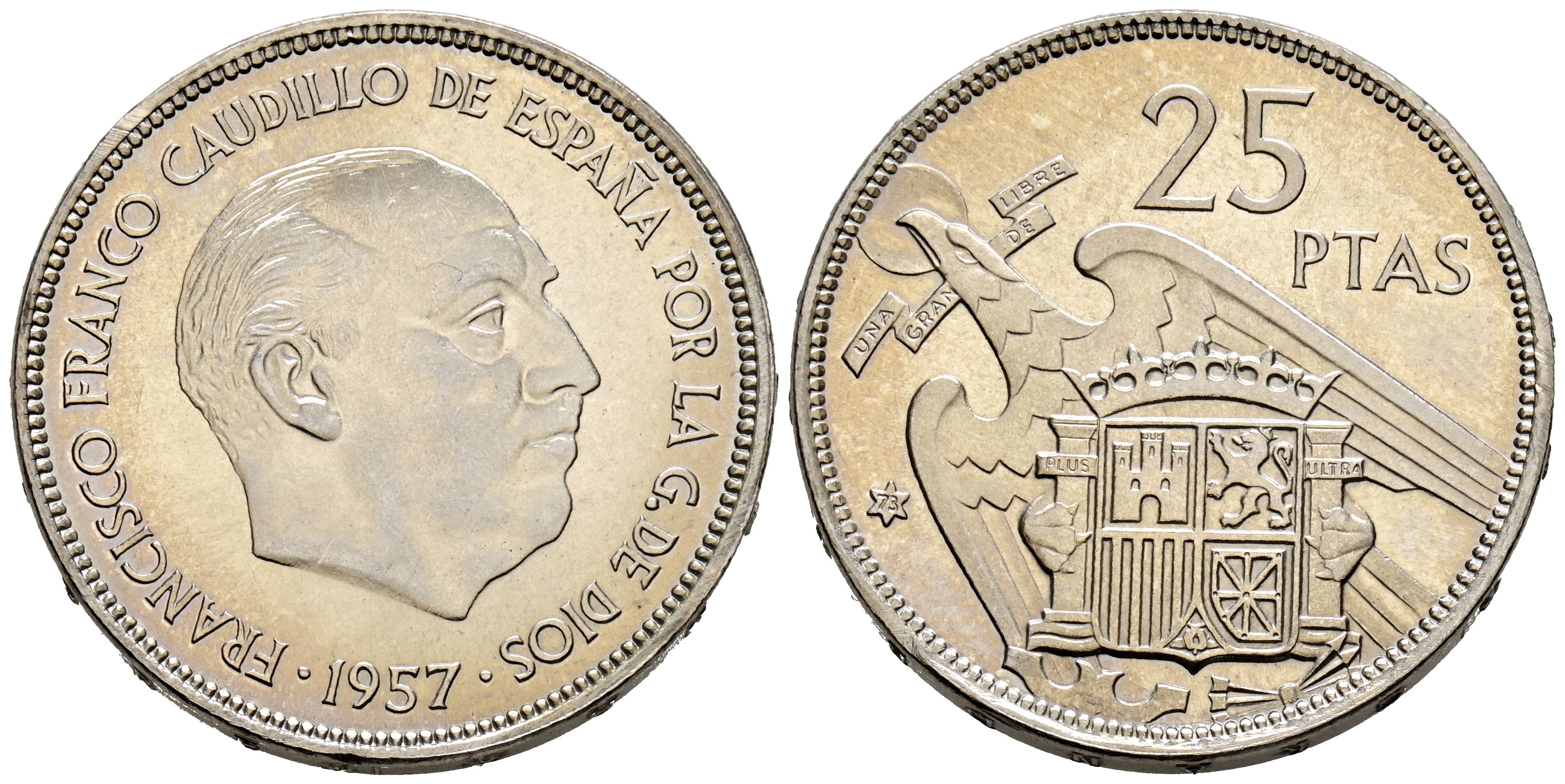 ESTADO ESPAÑOL (1936-1975). 25 Pesetas. (Ni. 8,37g/27mm). 1957 *73. Madrid. (Cal-2019-128). SC.