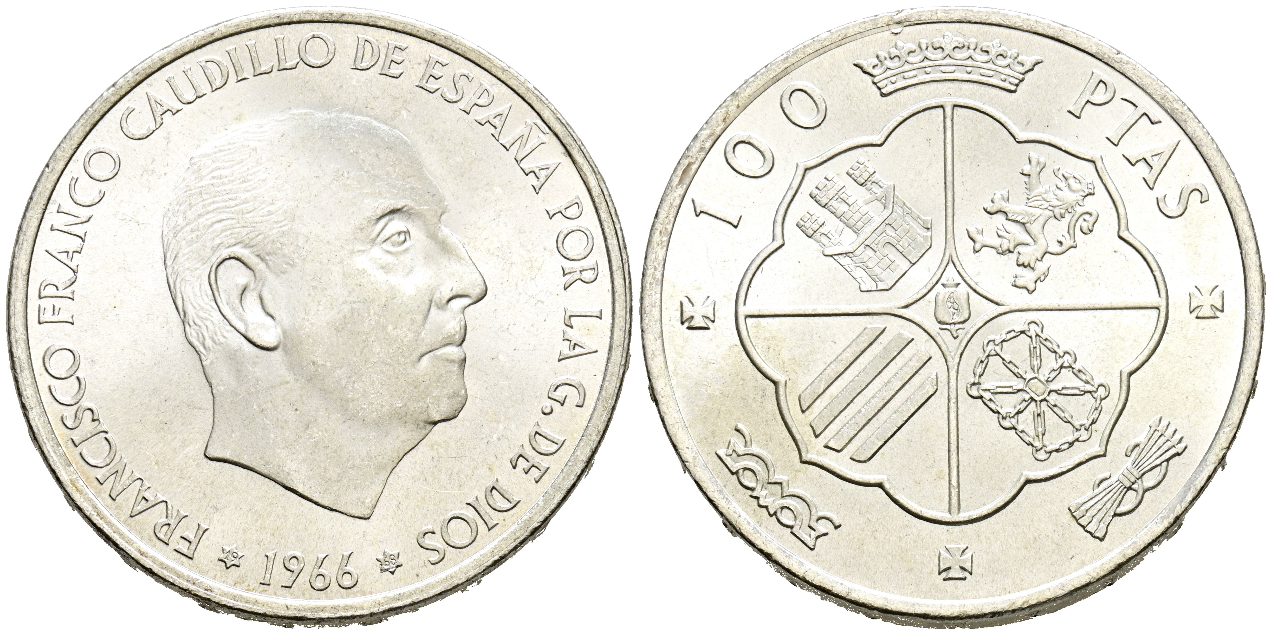 ESTADO ESPAÑOL (1936-1975). 100 Pesetas. (Ar. 18,81g/34mm). 1966 *19-68. Madrid. (Cal-2019-147). SC