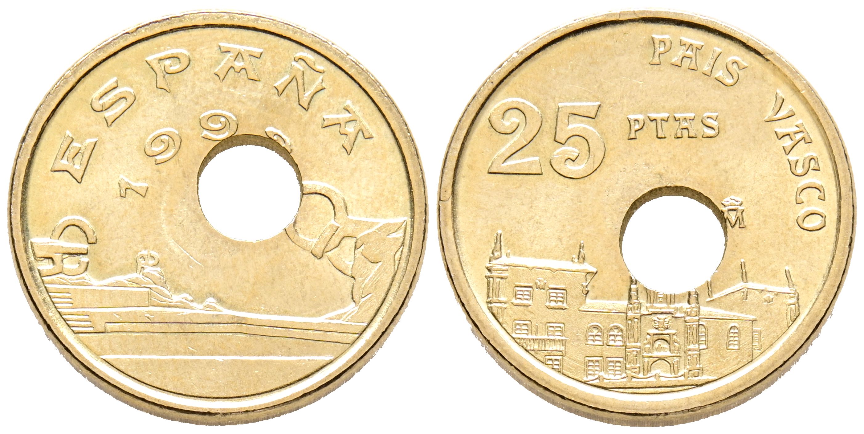 JUAN CARLOS I (1975-2014). 25 Pesetas (Cu-Ni. 4,25g/20mm). 1993. País Vasco. (Cal-2019-90). EBC+. Agujero desplazado.