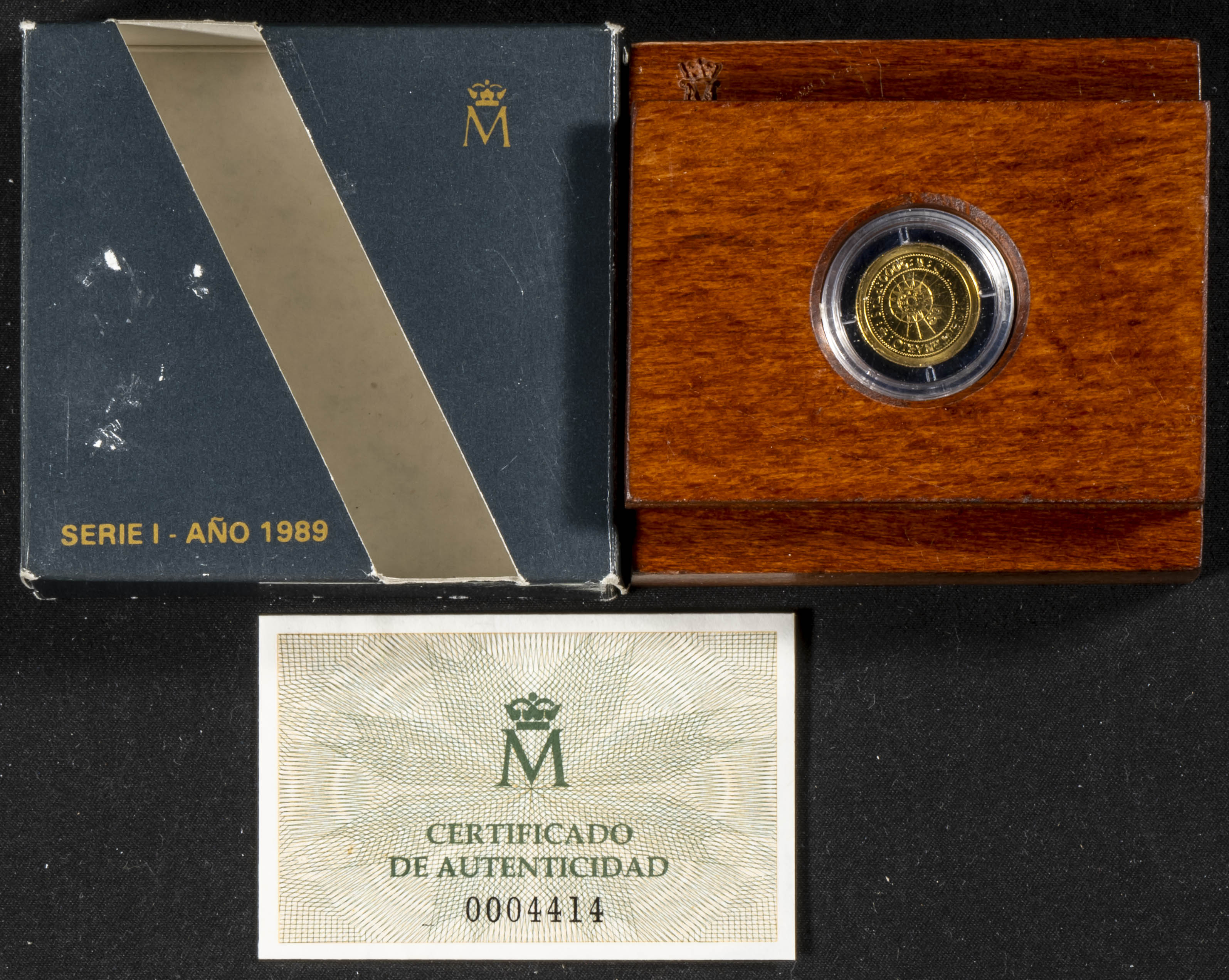 JUAN CARLOS I (1975-2014). 5000 Pesetas. (Au. 1,68g/15mm). Serie V Centenario. Serie I. 1989. FNMT. FDC. Incluye estuche original y certificado de autenticidad.