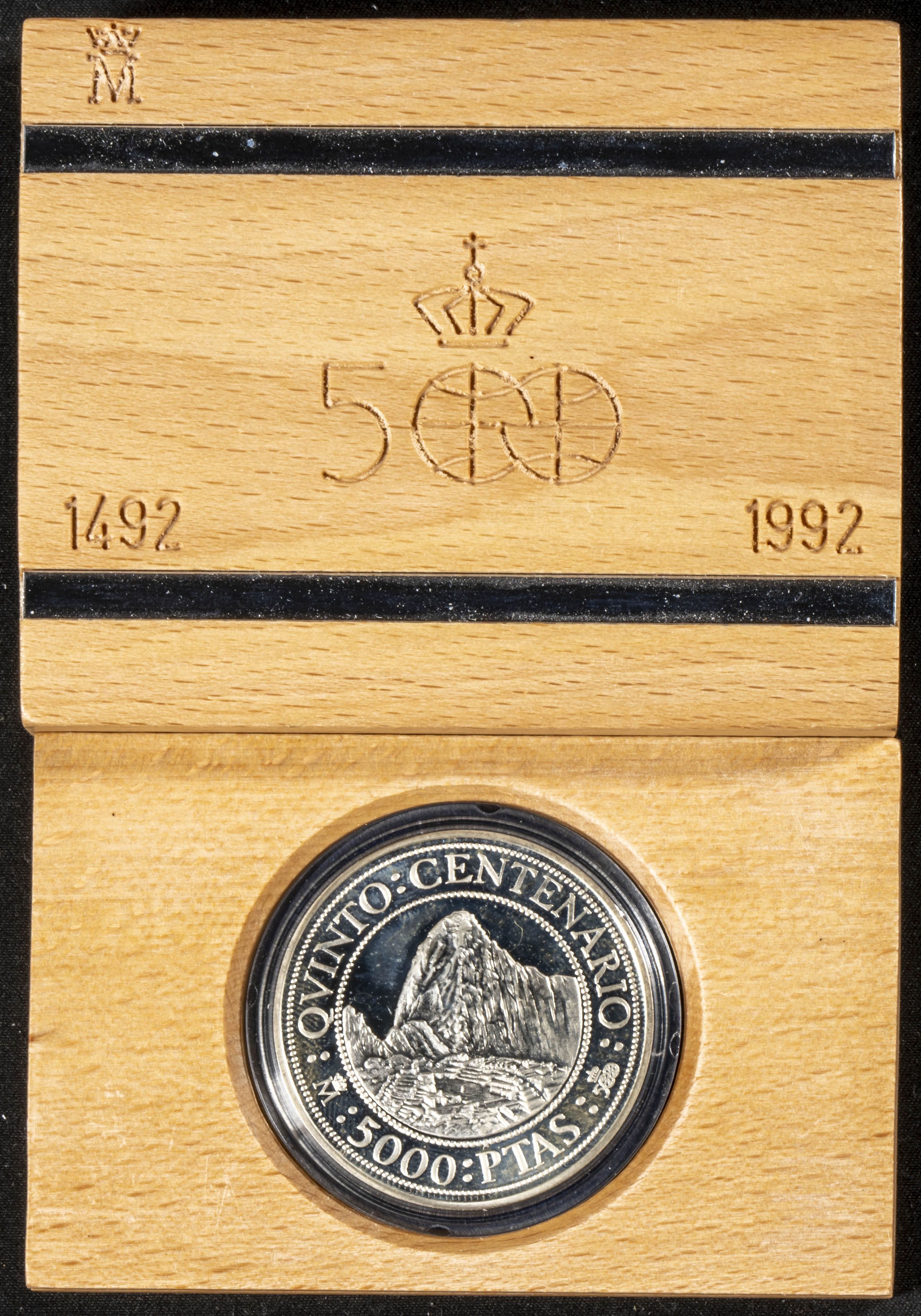 JUAN CARLOS I (1975-2014). 5000 Pesetas. (Ar. 54,00g/40mm). Serie Quinto Centenario. Serie III. 1991. FDC. Incluye estuche original en madera pero sin embalaje de cartón ni certificado de autenticidad.