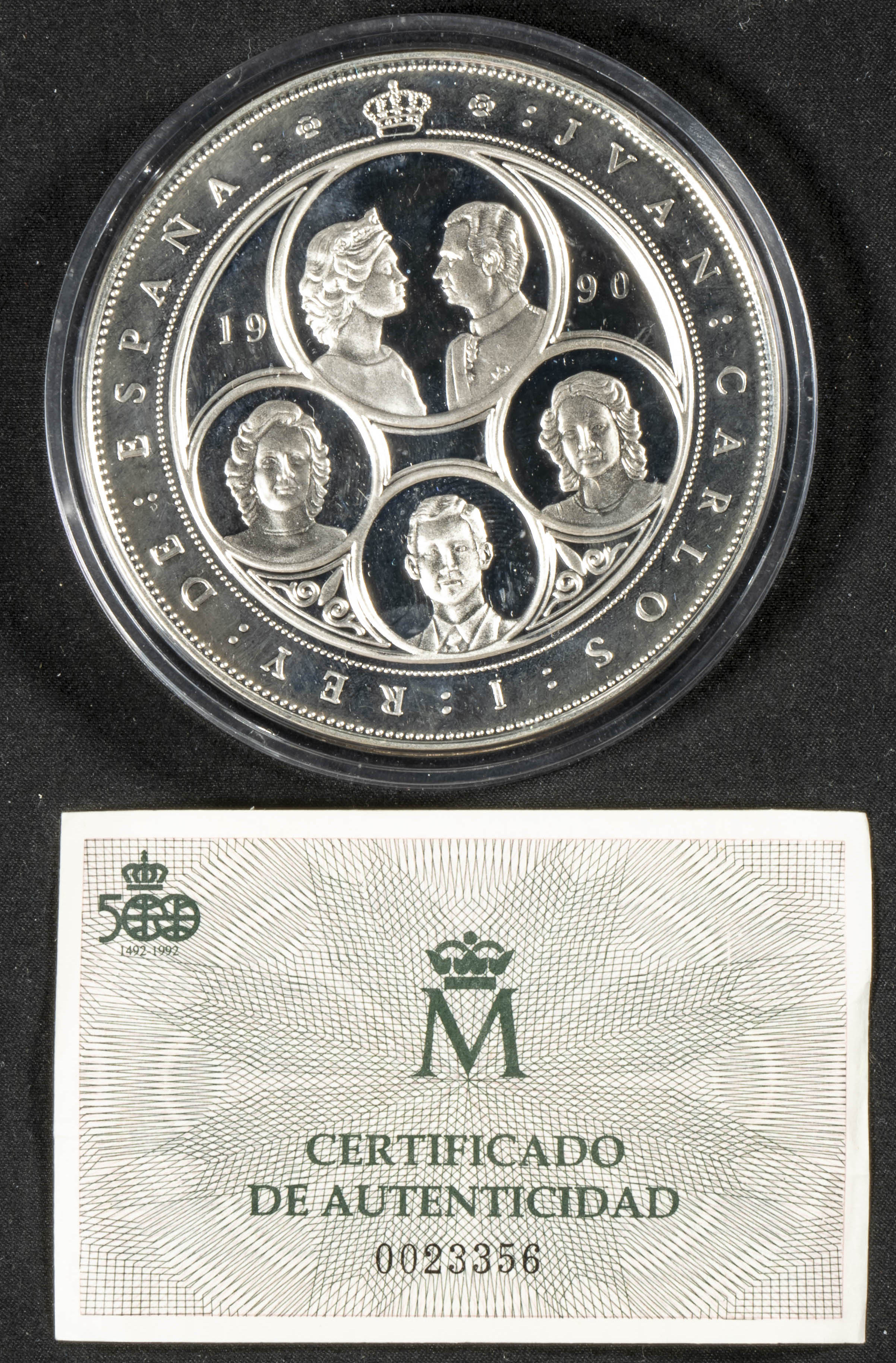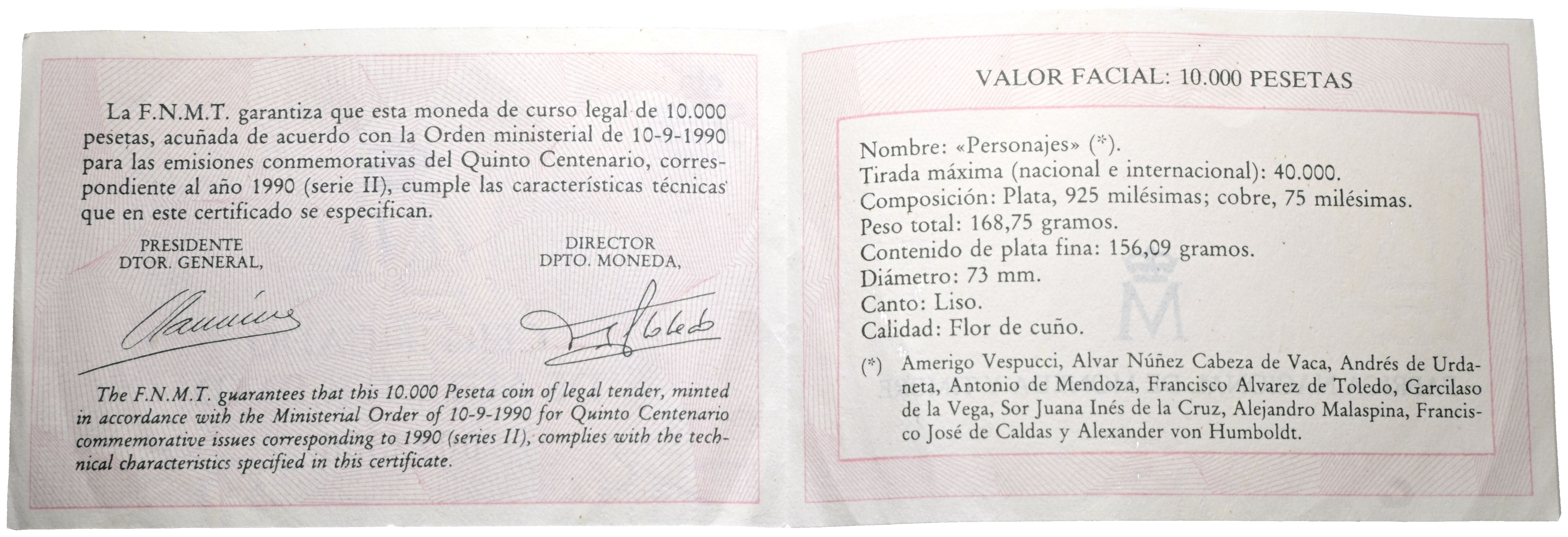 JUAN CARLOS I (1975-2014). 10.000 Pesetas. (Ar. 168,75g /73mm). V Centenario. 1990. Serie II. FNMT. FDC. Incluye cápsula y certificado de autenticidad.