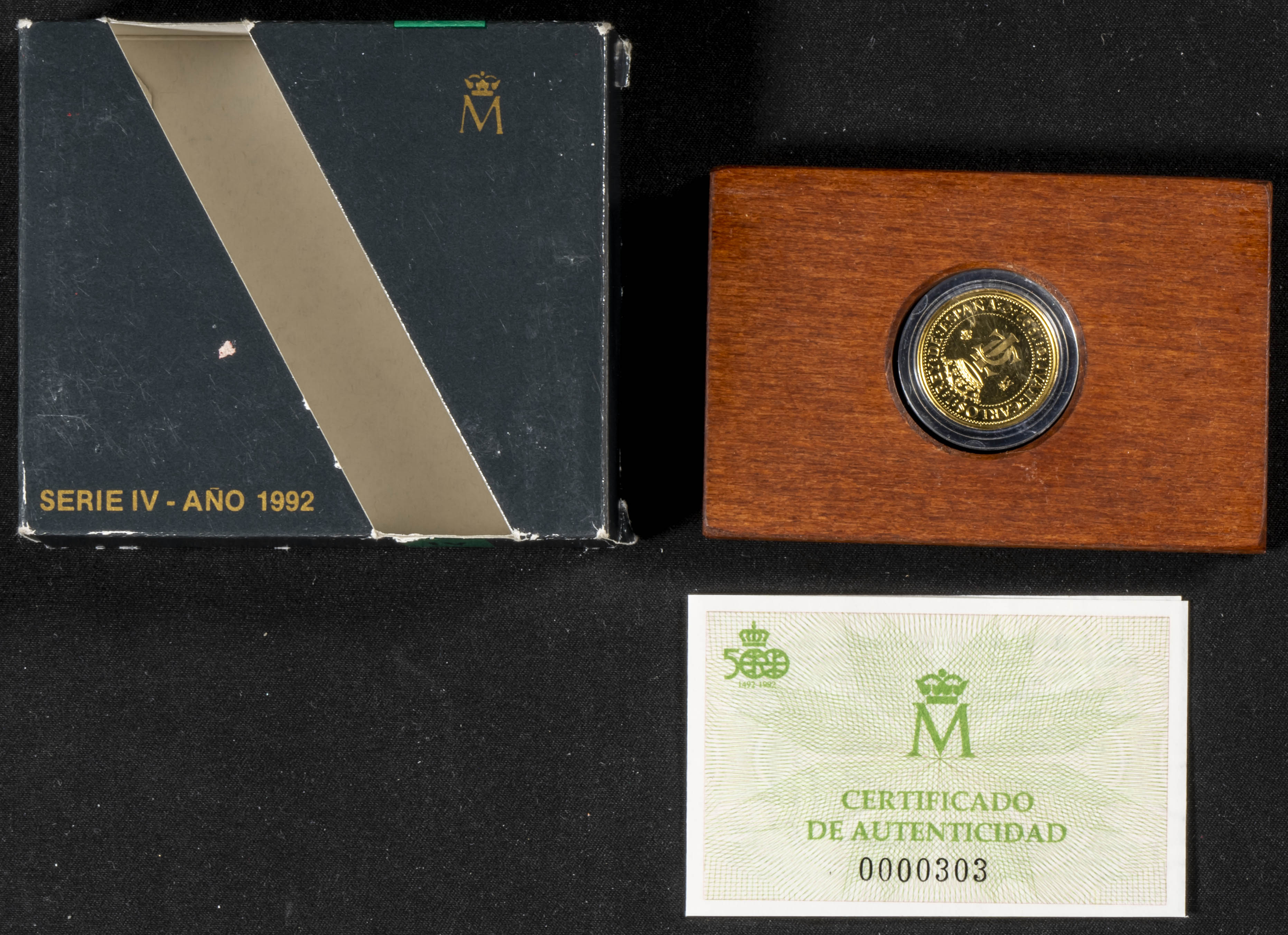 JUAN CARLOS I (1975-2014). 10.000 Pesetas. (Au. 3,37g/19mm). Serie IV Quinto Centenario. 1992. FNMT. FDC. Presentada en estuche oficial y con certificado de autenticidad.