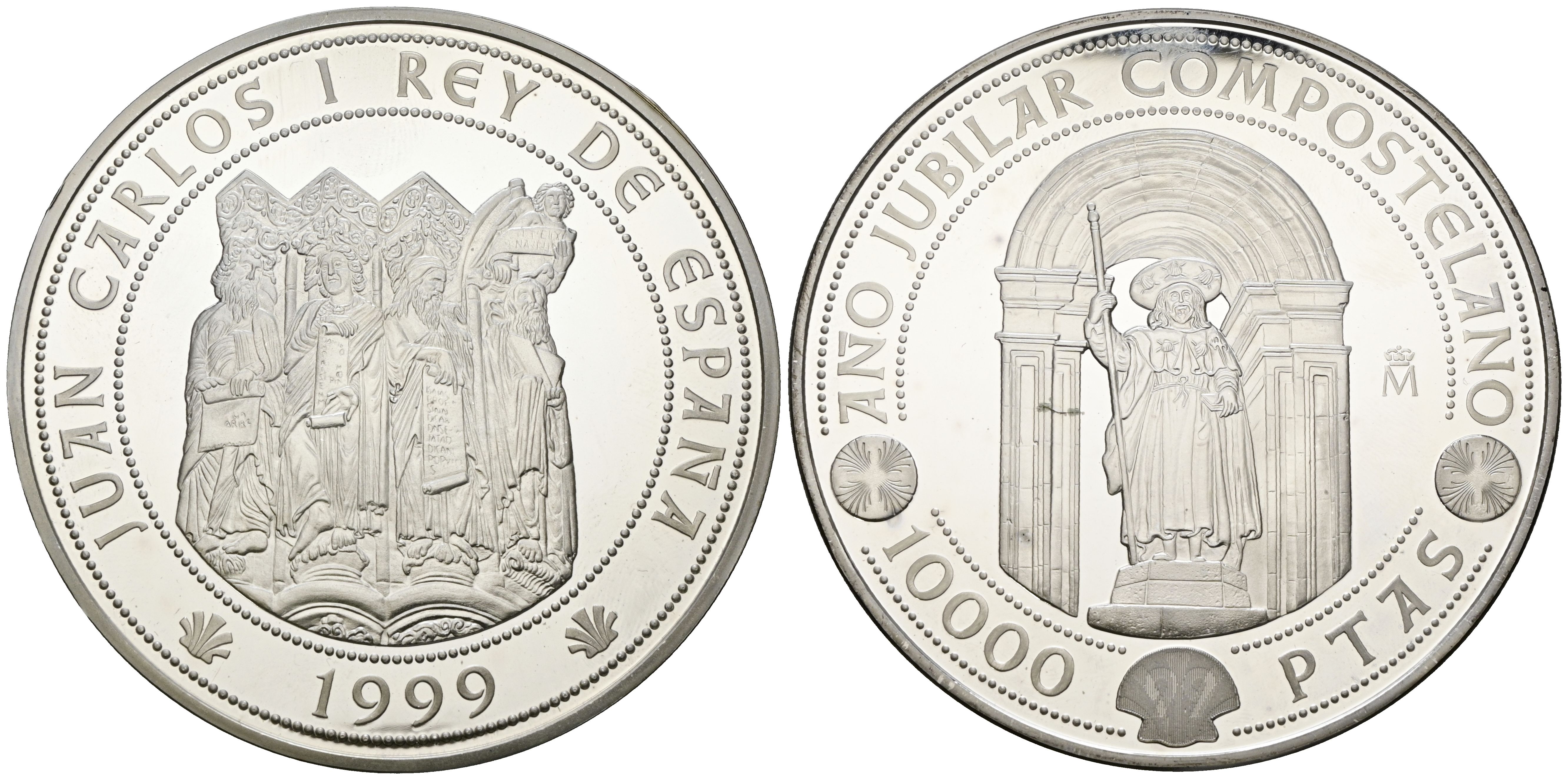 JUAN CARLOS I (1975-2014). 10.000 Pesetas. (Ar. 168,82g /73mm). Año Jubilar Compostelano. 1999. FNMT. PROOF. Incluye cápsula y certificado de autenticidad.