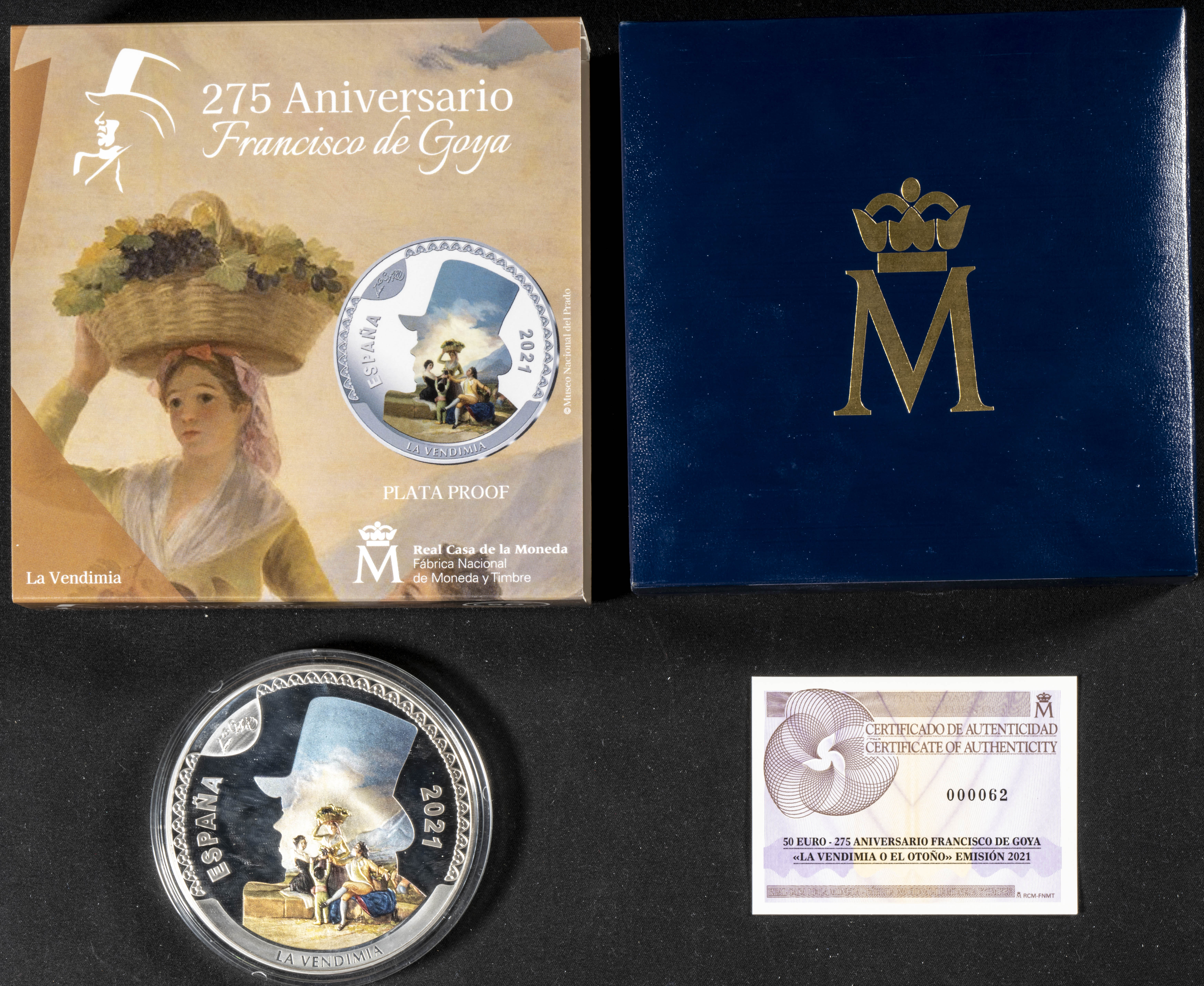 FELIPE VI (2014-?). 50 Euros. (Ar. 168,75g/73mm). 275 Aniversario Francisco de Goya. 2021. FNMT. PROOF. Incluye estuche original y certificado de autenticidad. Tirada de sólo 2000 unidades.