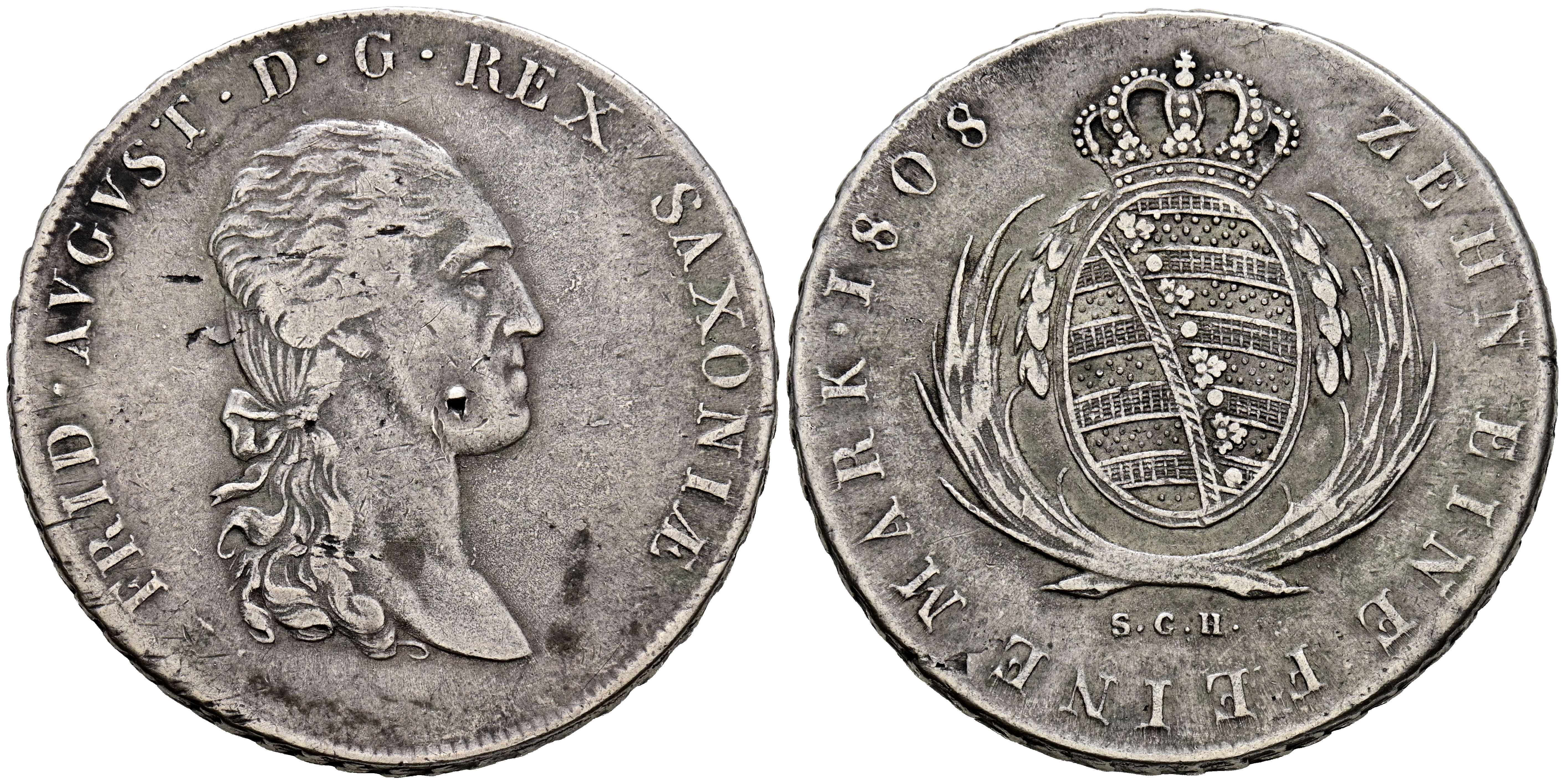 ALEMANIA. 1 Thaler (Ar. 27,77g/40mm). 1808. Friedrich August I ( 1806-1827). Sajonia. (Dav. 854). BC+/MBC-.