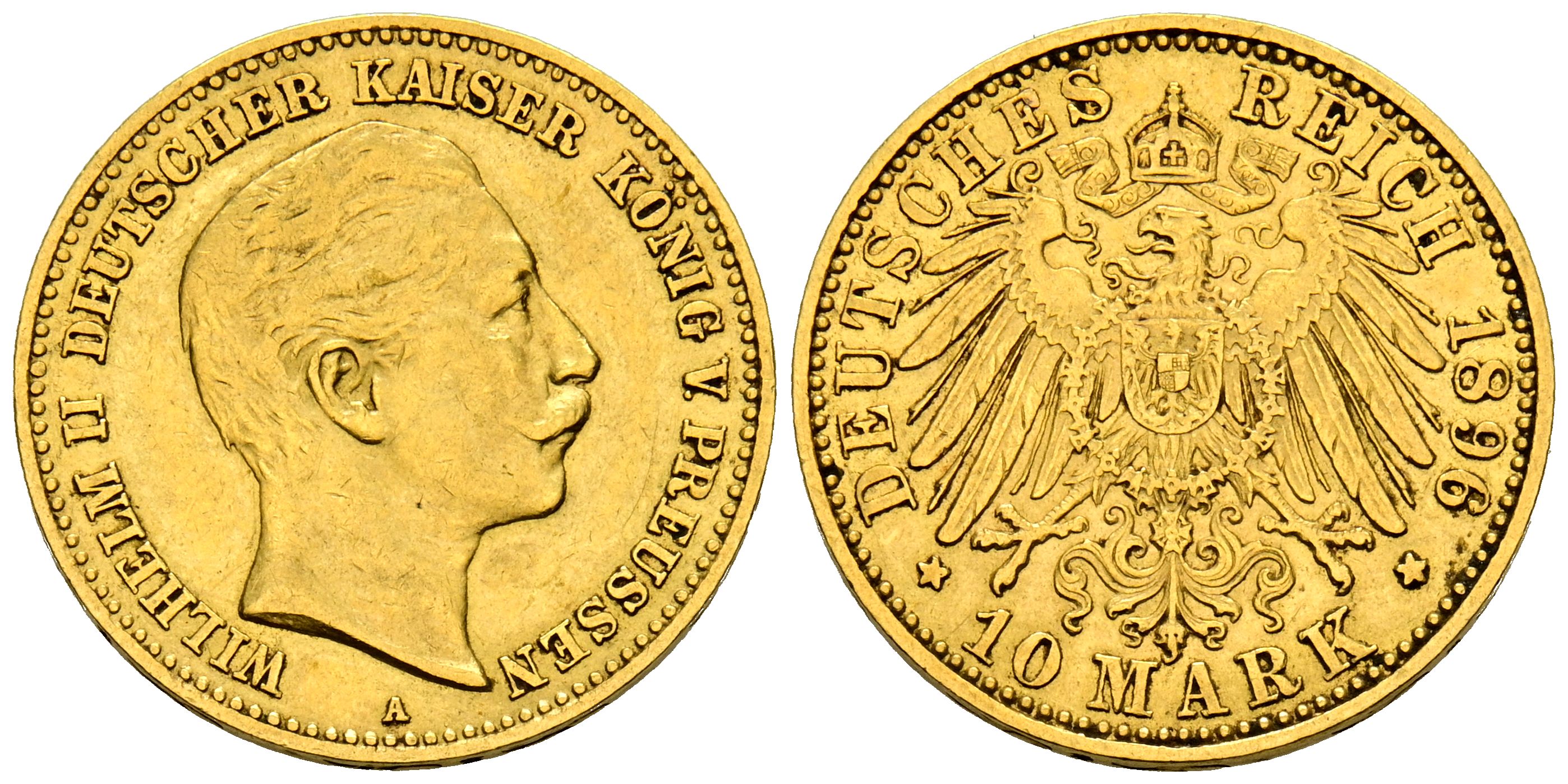 ALEMANIA. 10 Mark (Au. 3,97g/19mm). 1896. Guillermo II. Berlín A. (Km#520). MBC+.