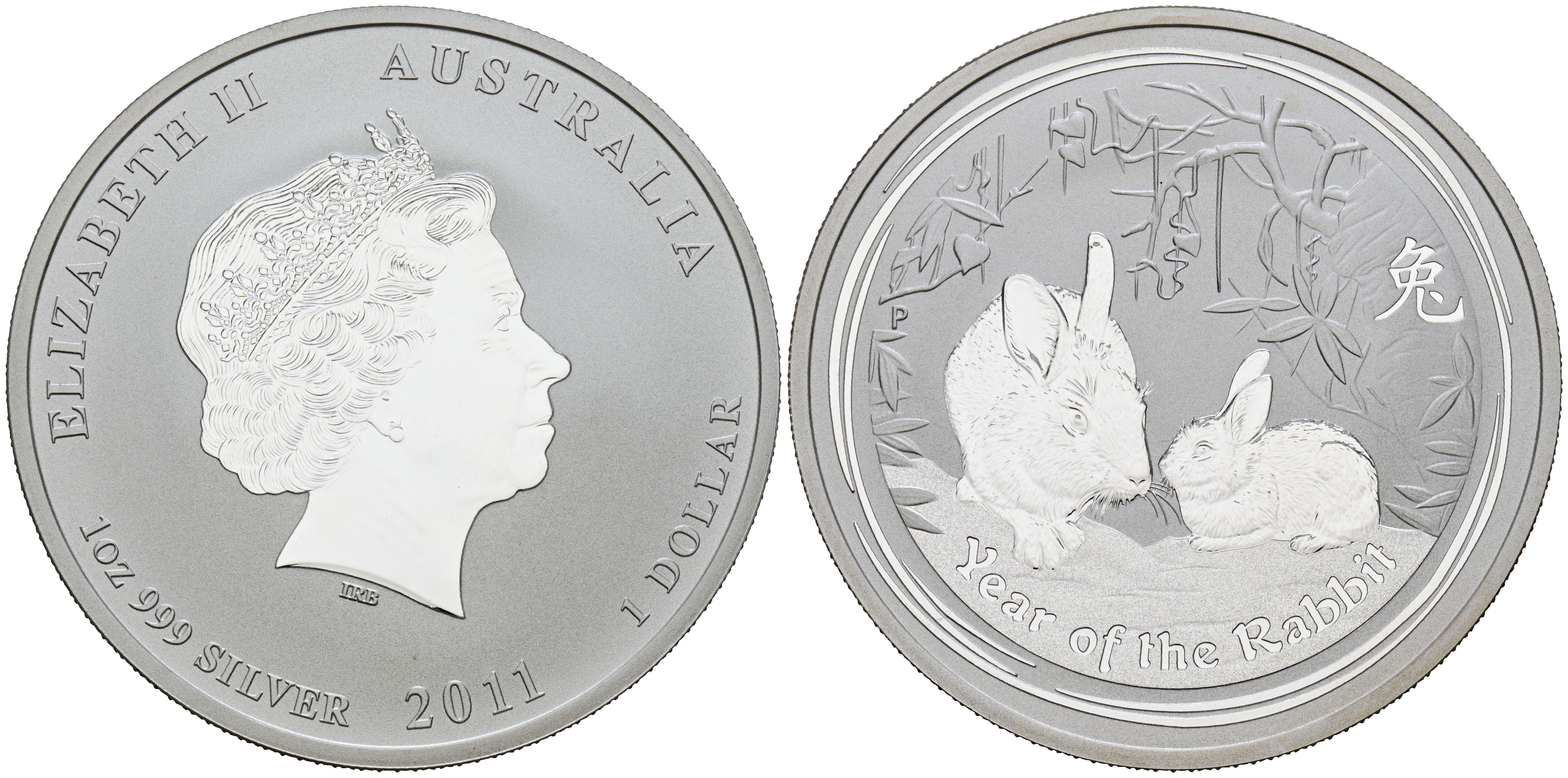 AUSTRALIA. 1 Dollar. (Ar. 31,96g/45mm). 2011. Perth P. Serie Lunar II: Conejos. (Km#1475). FDC. Escasa.